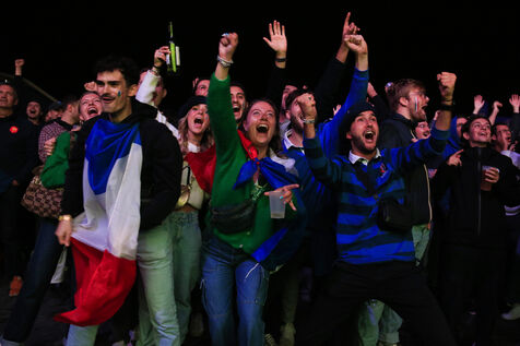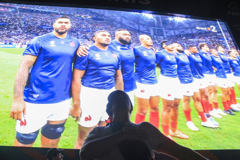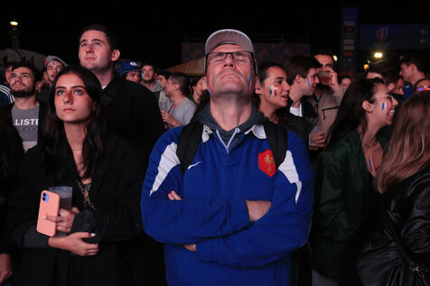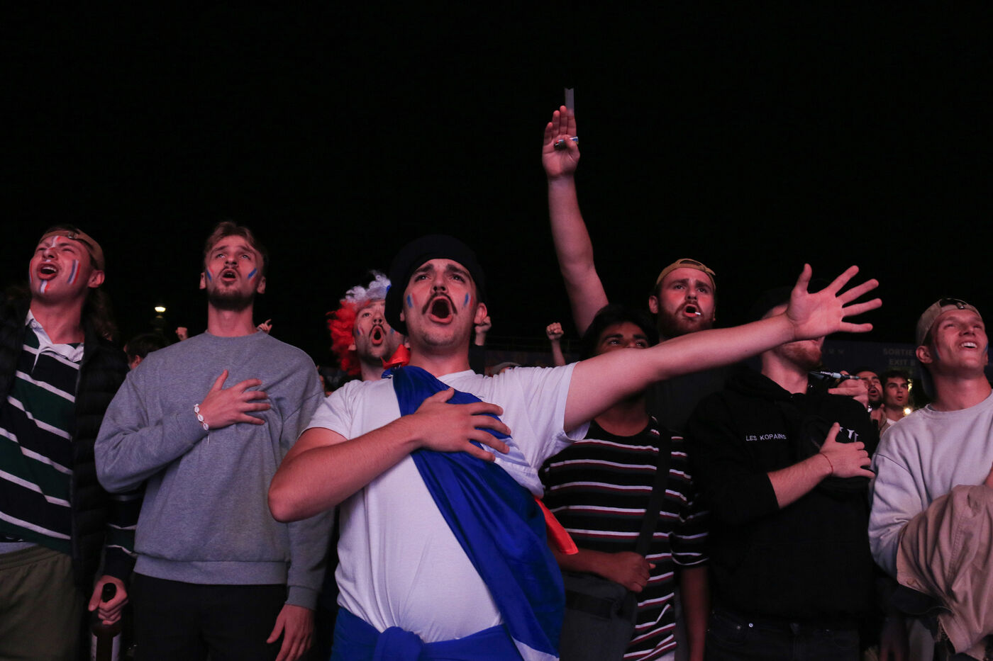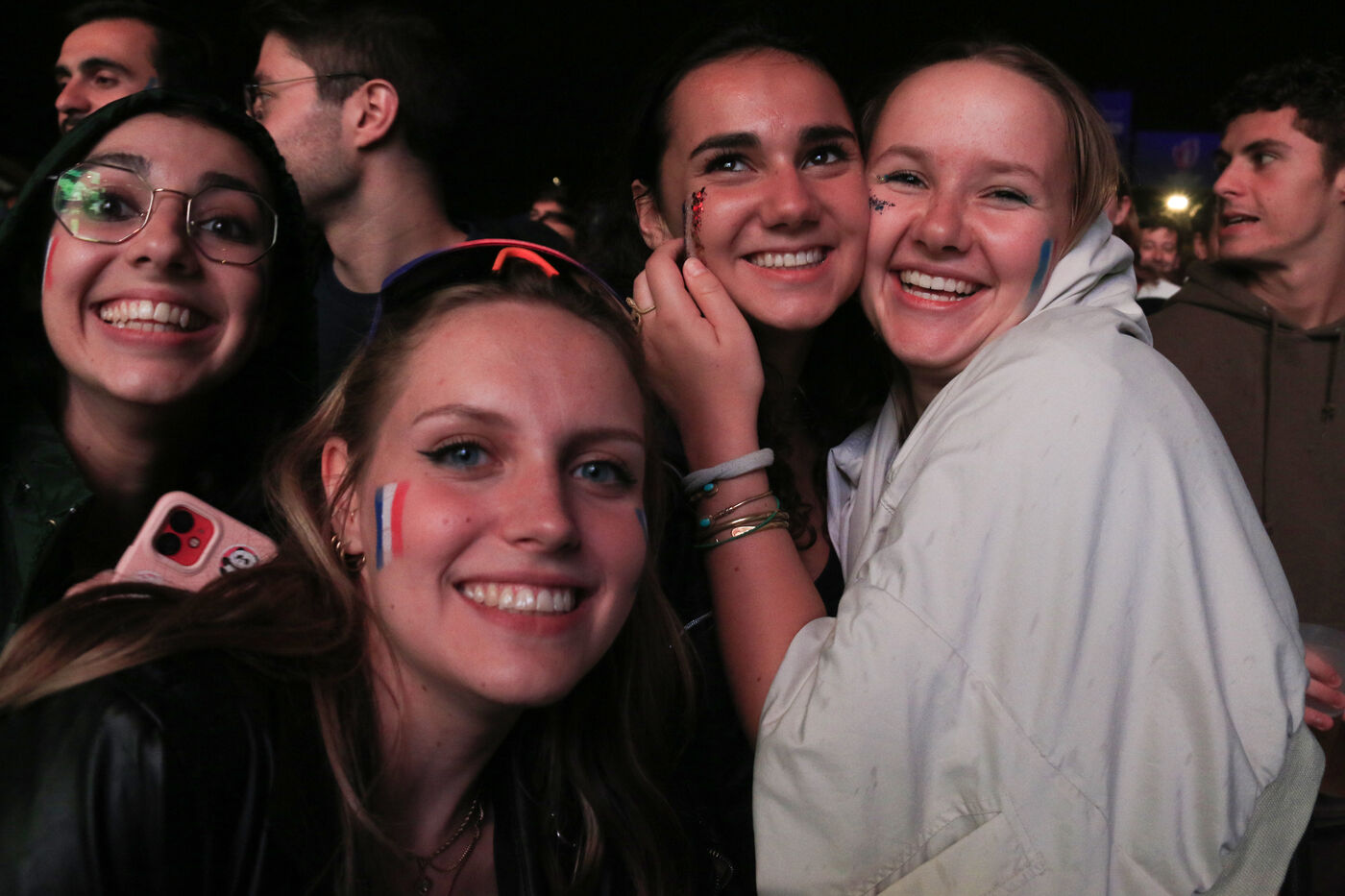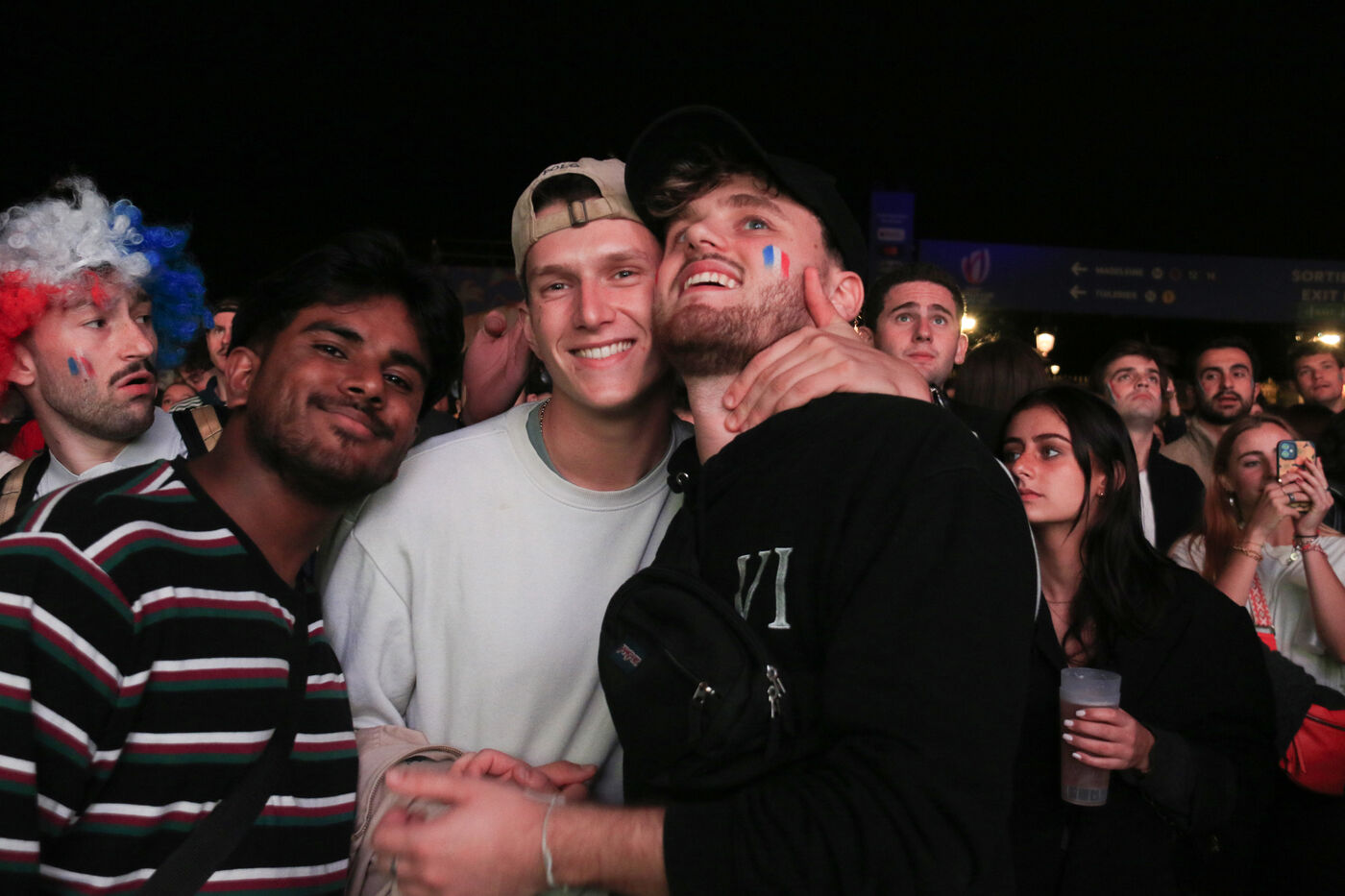 France, Paris, 2023-09-21. French supporters at the Fan Zone at Place de la Concorde during France - Namibia for the Rugby World Cup. Photography by Quentin de Groeve / Hans Lucas