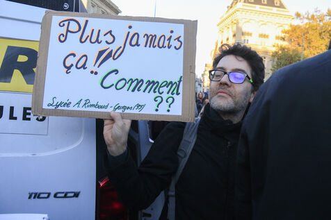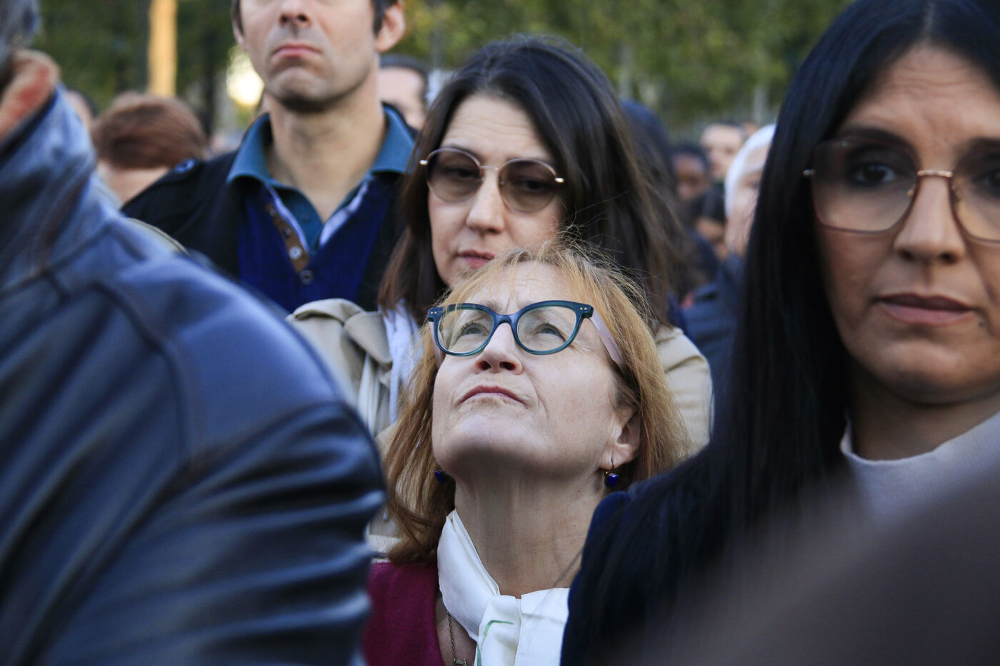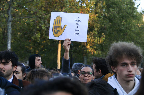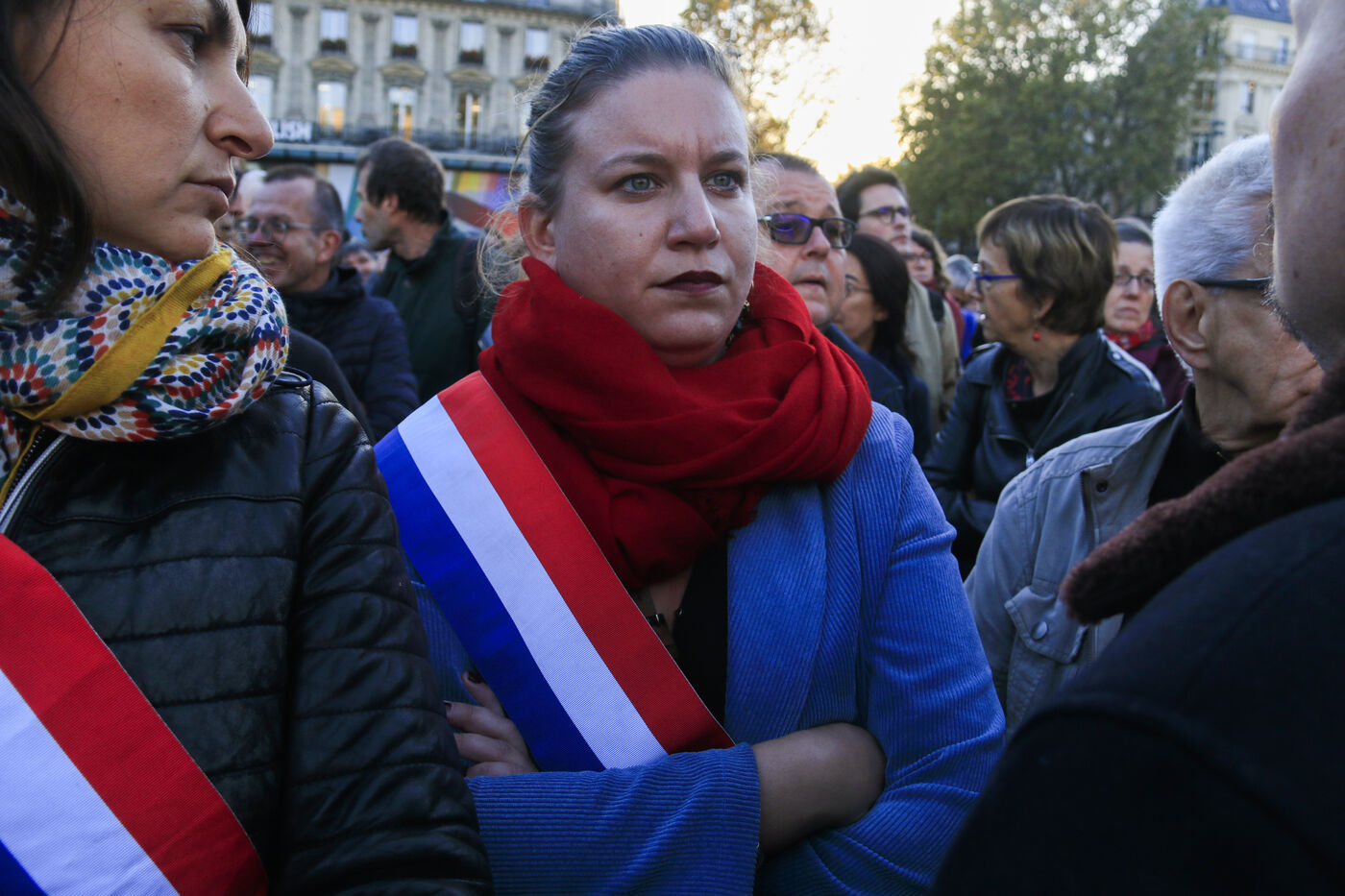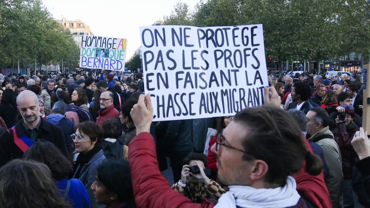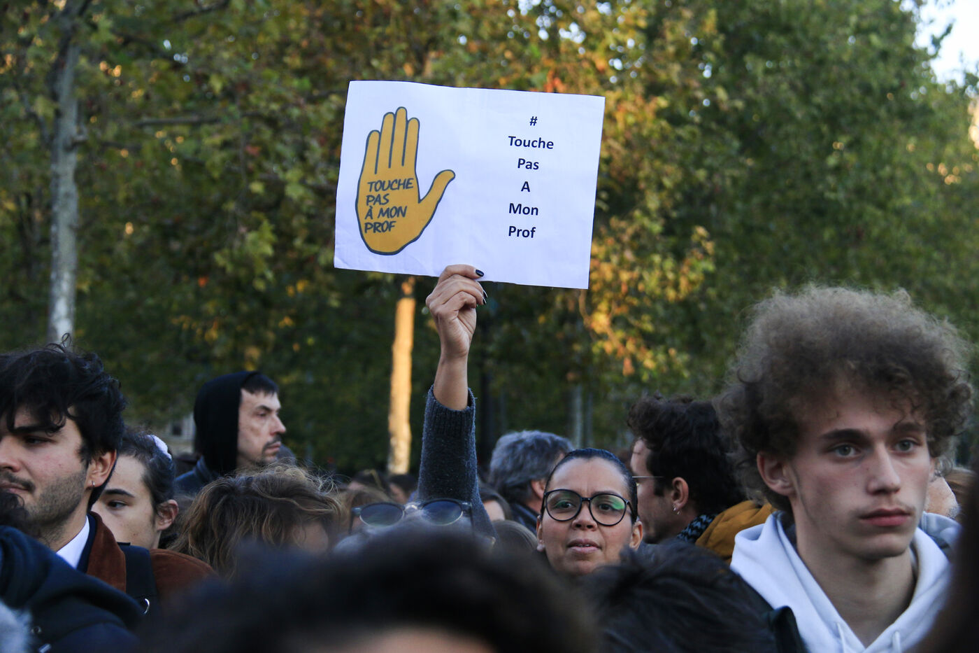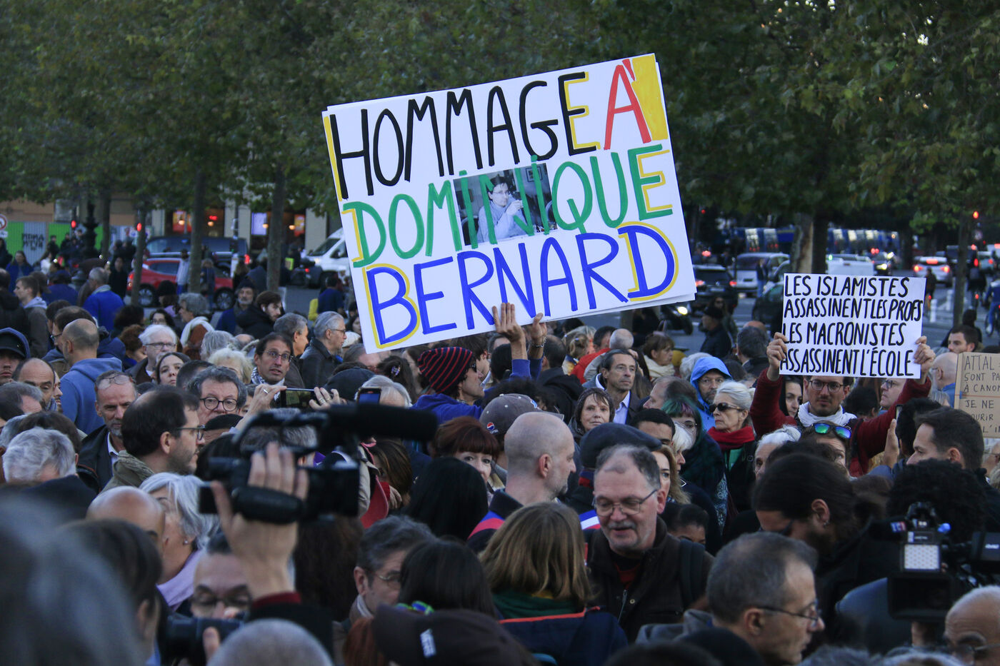 France, Paris, 2023-10-16. Many people gathered for the tribute to Dominique Bernard at Place de la République. Photography by Quentin de Groeve / Hans Lucas