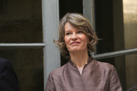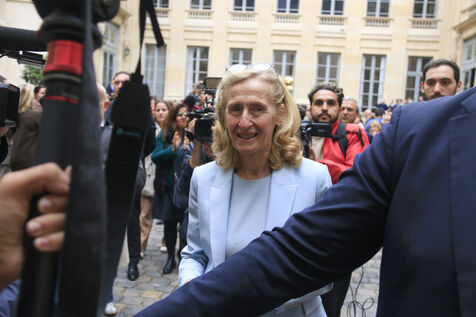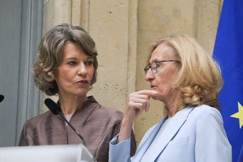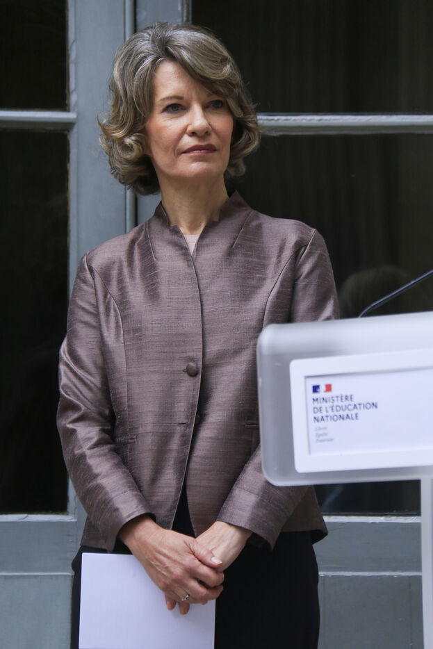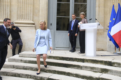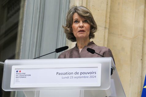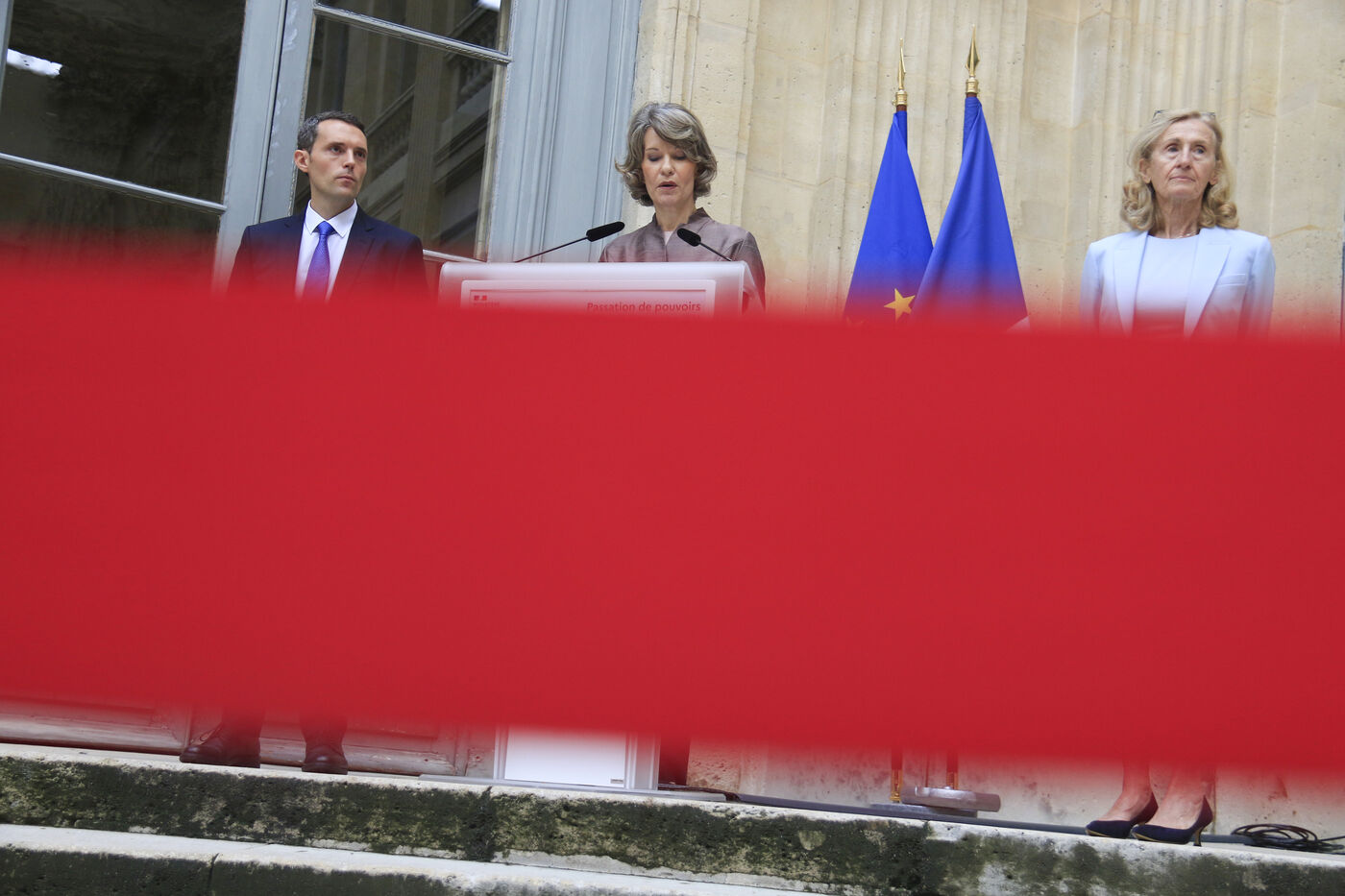 Transfer of power between Nicole Belloubet and Anne Genetet at the Ministry of National Education in Paris on September 23, 2024.