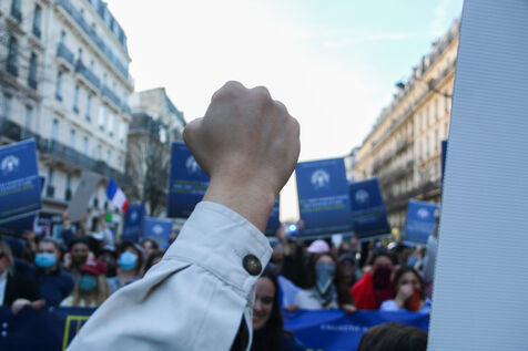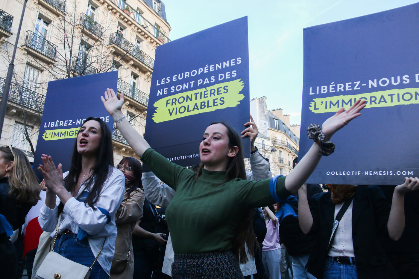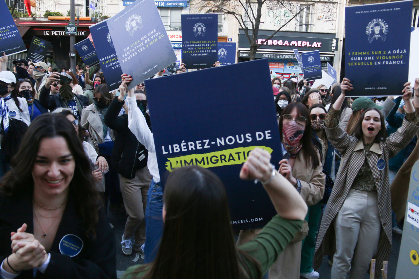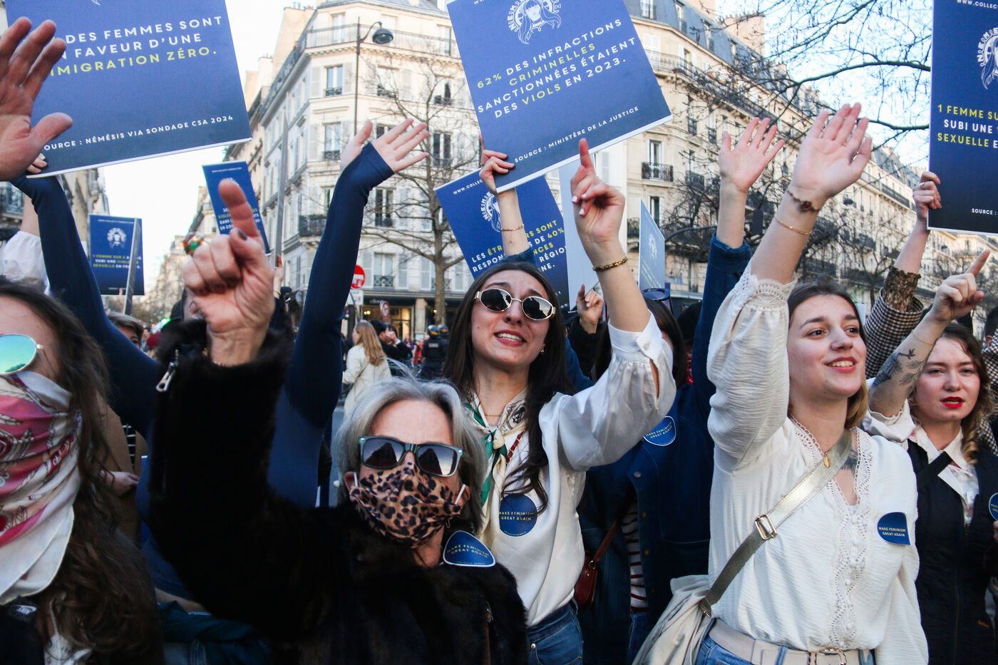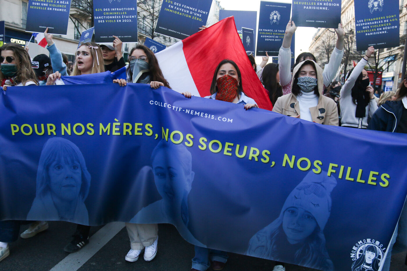 Manifestation du Collectif Némésis à la Journée des Femmes à Paris le 8 mars 2025.