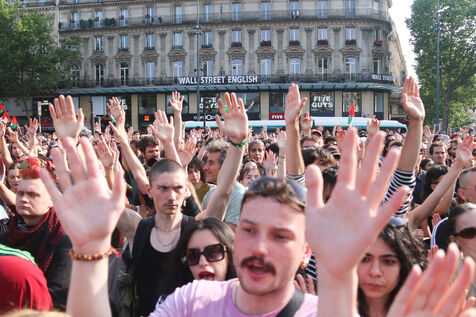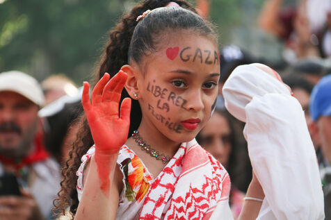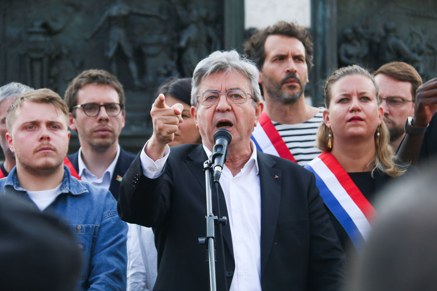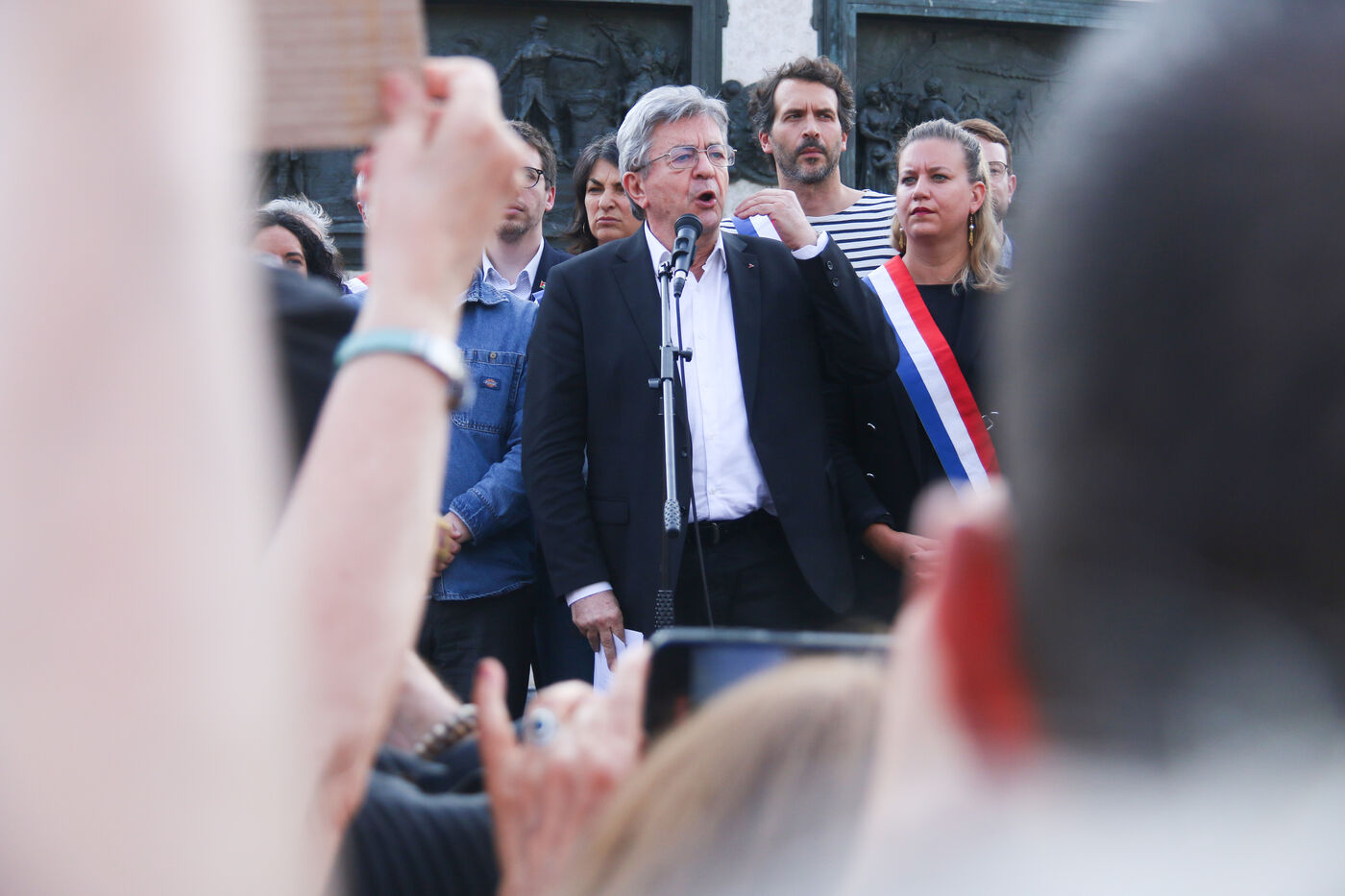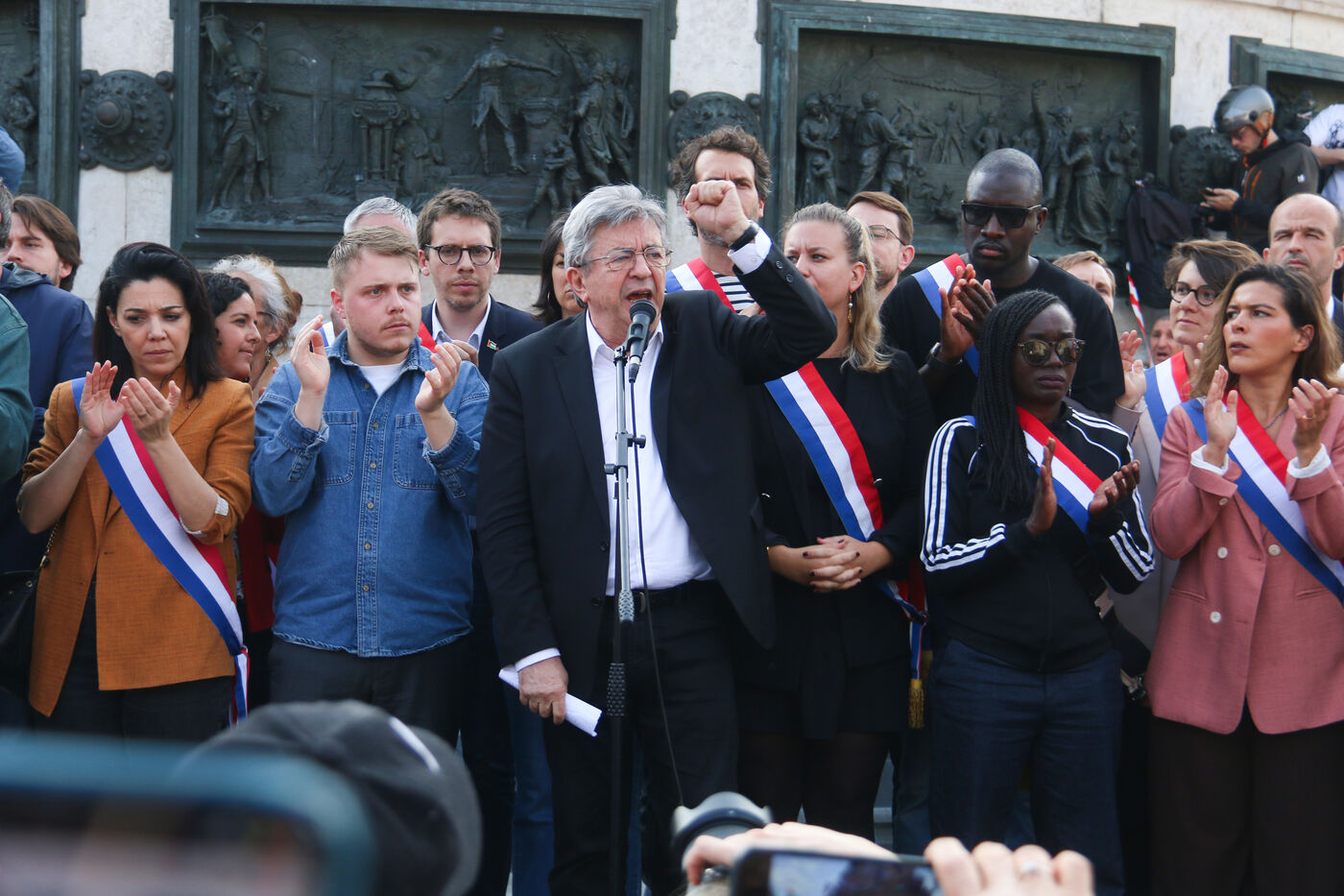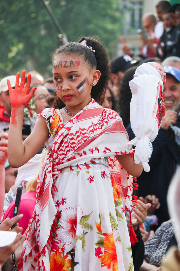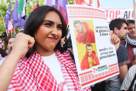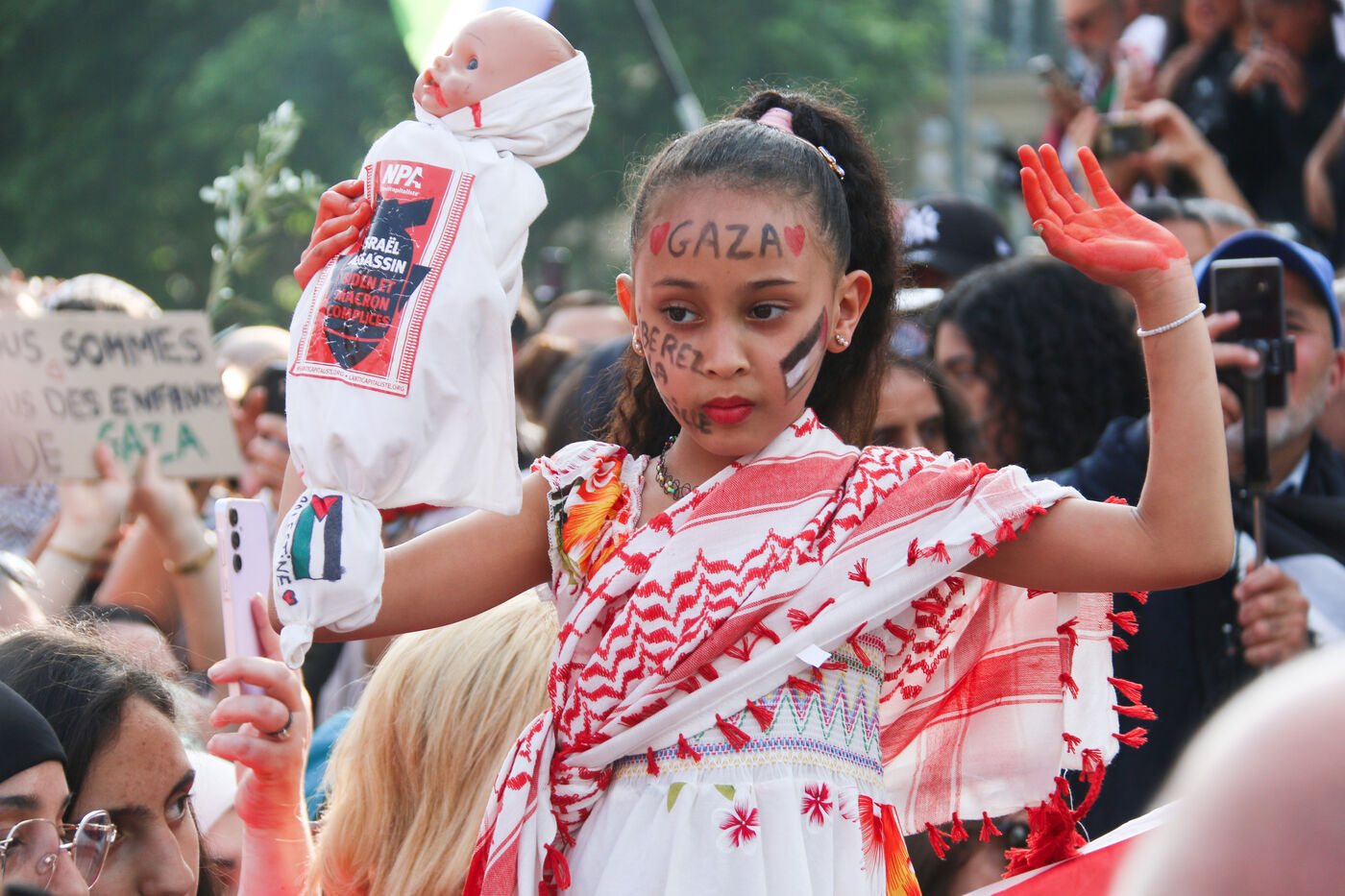 Thousands of people attended the rally organized by La France Insoumise (LFI) at Place de la Republique to demand the release of Rima Hassan and Greta Thumberg following the interception of the humanitarian sailing ship Gaza Freedom Flotilla by Israeli authorities. Paris, June 9, 2025.