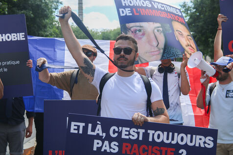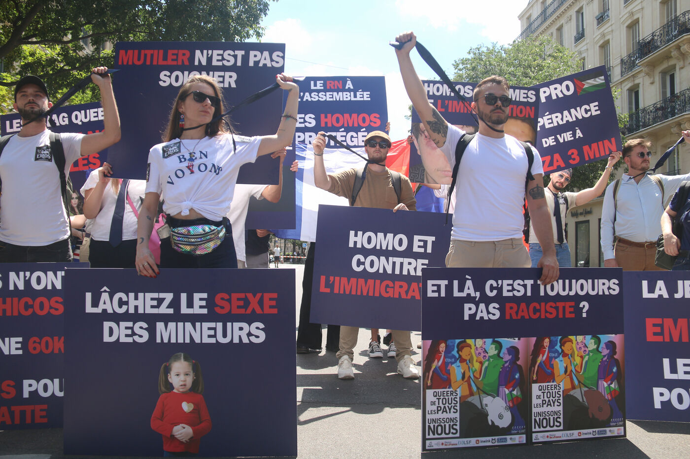 Marche des Fiertés 2025 à Paris, où le Collectif Eros s'y était rassemblé en marge de l'évènement le 28 juin 2025.