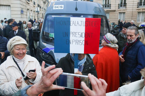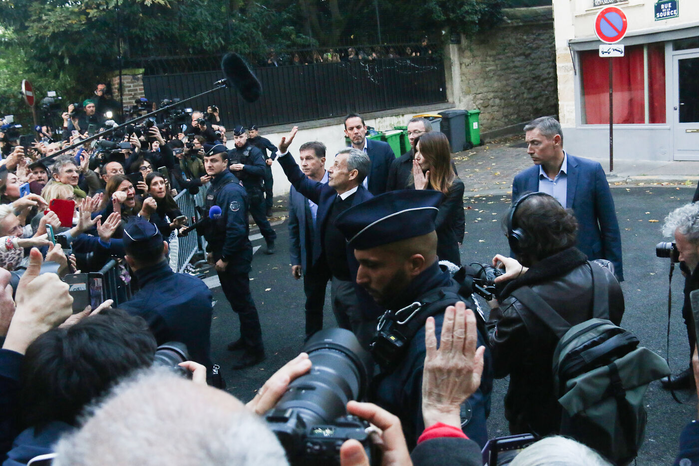 A rally in support of former French President Nicolas Sarkozy was held outside his home ahead of his incarceration at La Santé Prison following the Libyan financing scandal surrounding his 2007 presidential campaign. The former head of state greeted the crowd with his wife, Carla Bruni. Paris, October 21, 2025.