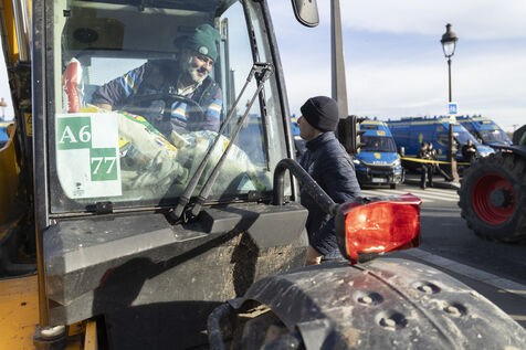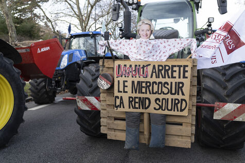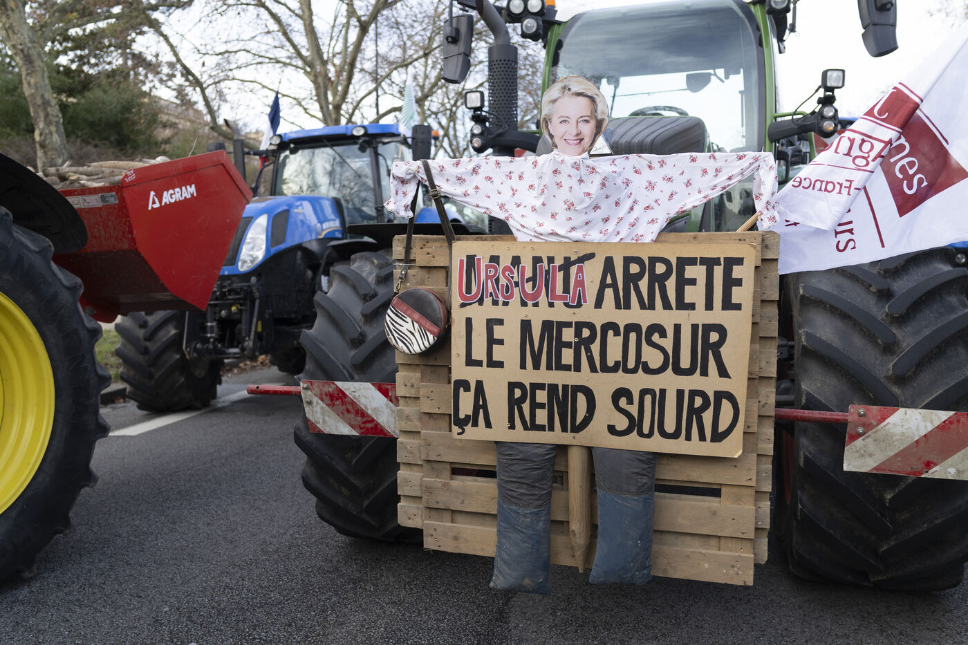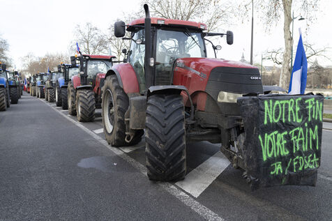 Farmers from the FDSEA gathered in front of the National Assembly with their tractors to denounce the EU-Mercosur agreement and to defend food sovereignty in Paris, France on January 13, 2026.