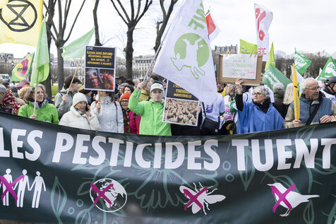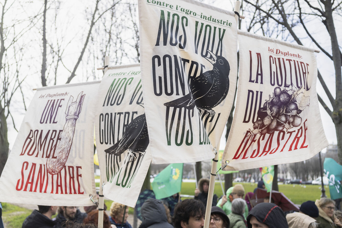 Un rassemblement s'est tenu à proximité de l'Assemblée Nationale en opposition à la Loi Duplomb visant la réintroduction de pesticides alors que ladite loi sera débattue au Parlement suite à la pétition ayant recueillie 2,1 millions de signatures à Paris en France le 11 février 2026