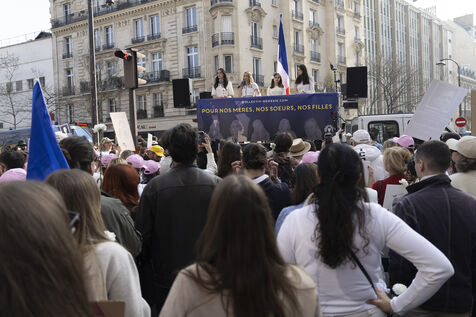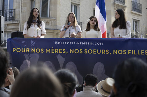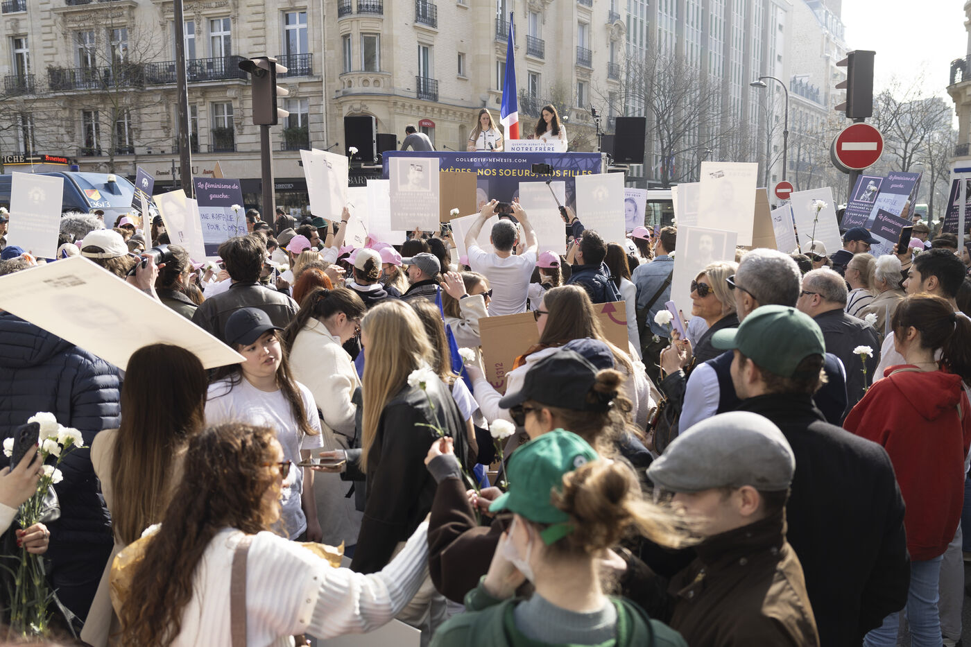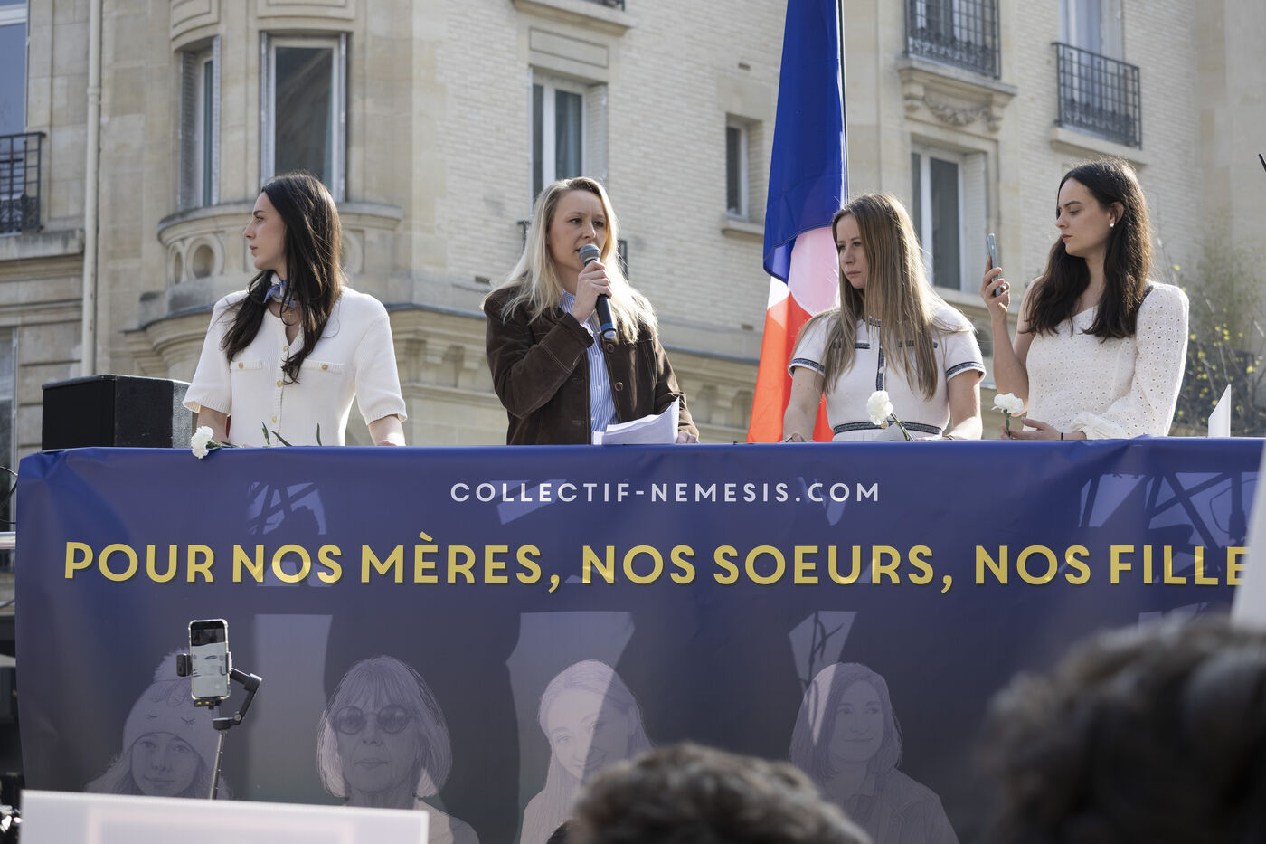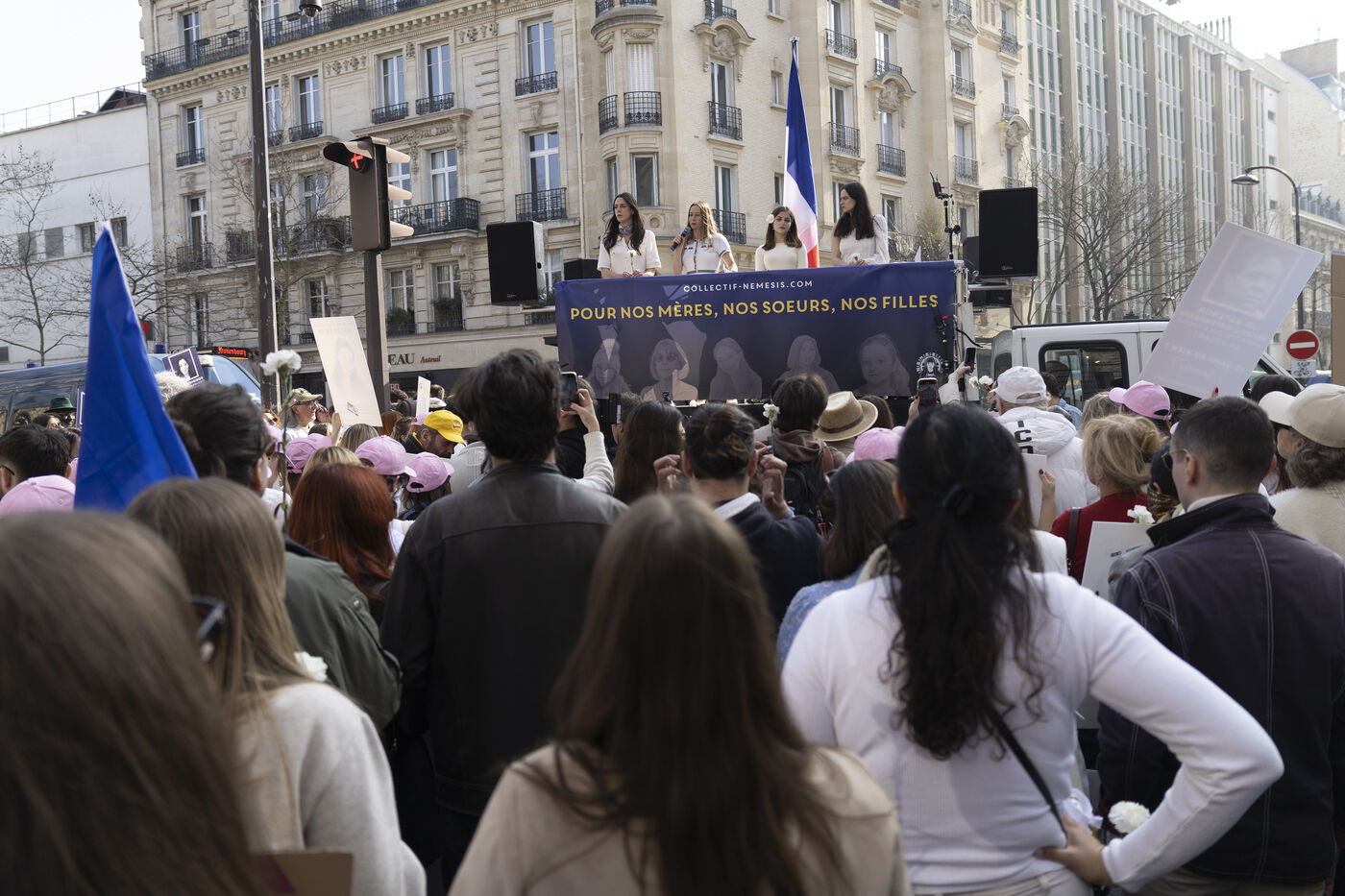 The Nemesis Collective gathered in the 16th arrondissement of Paris for International Women's Day in Paris, France on March 8, 2026.