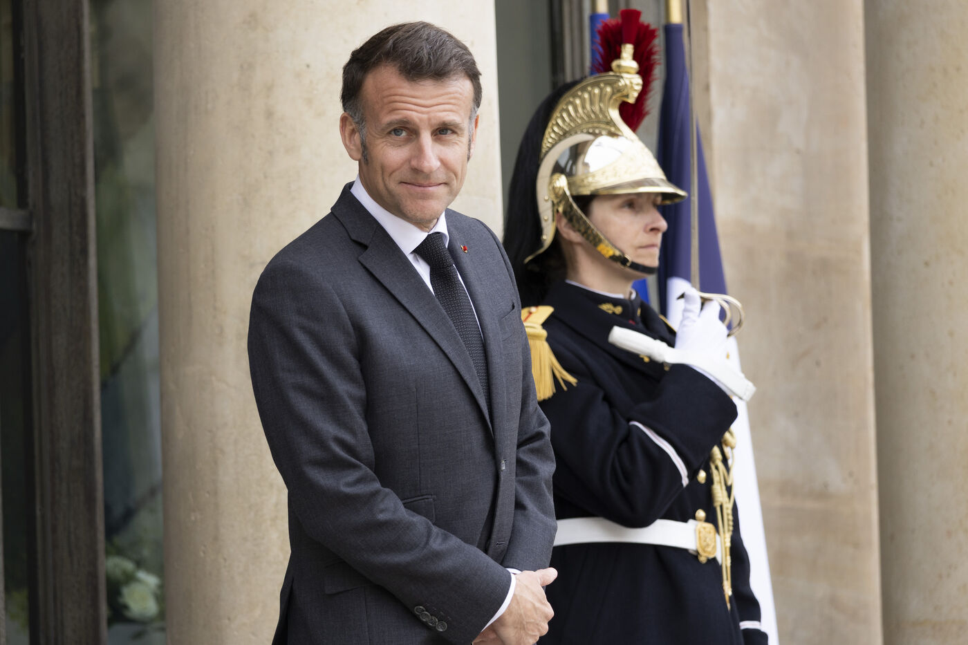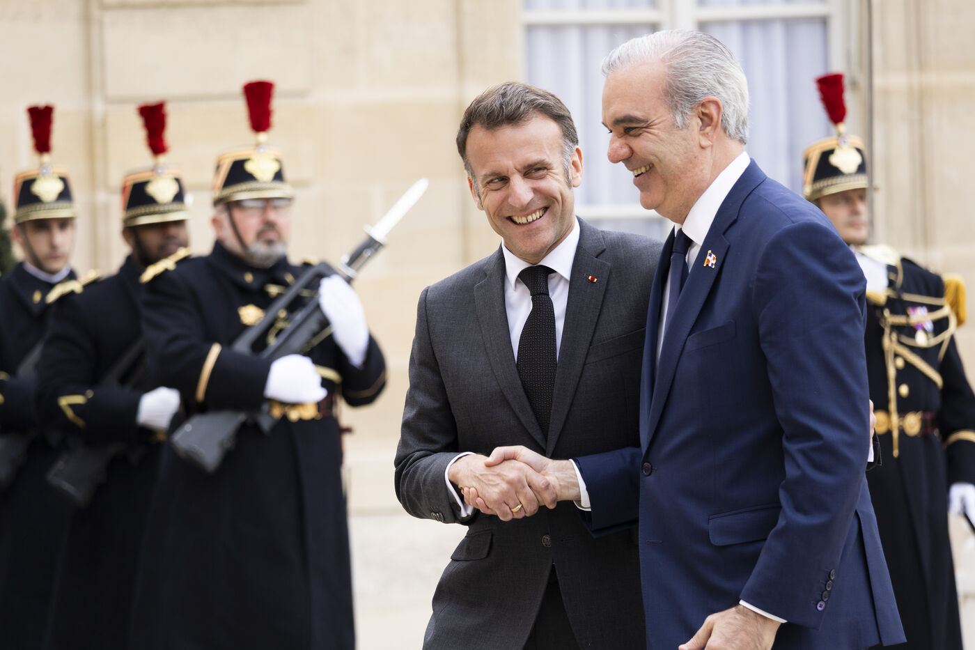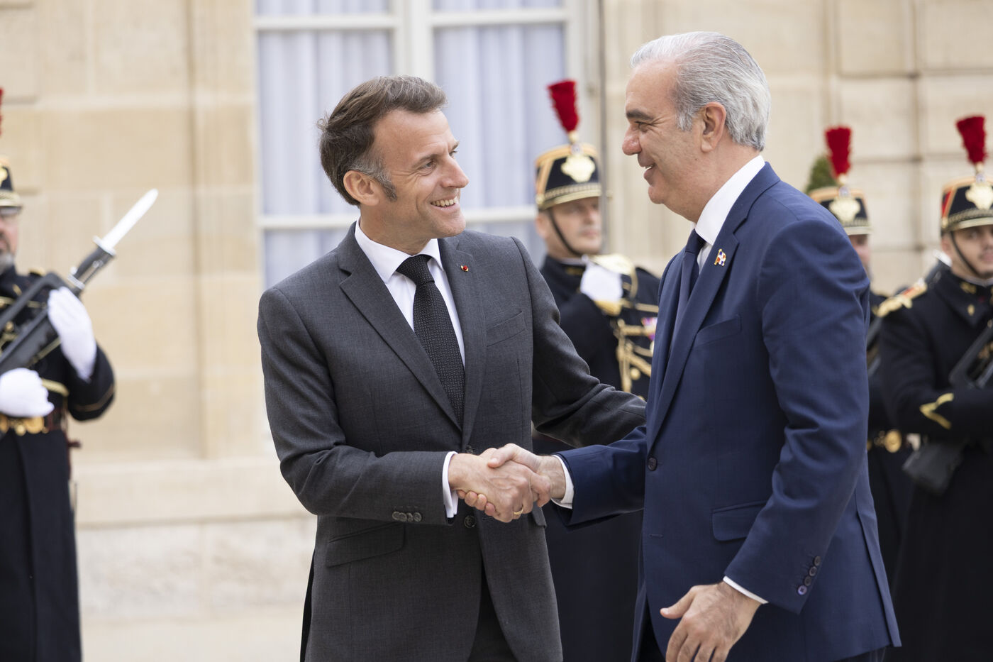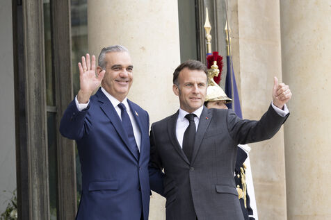 Reception of the President of the Dominican Republic, Luis Abinader, at the Élysée Palace