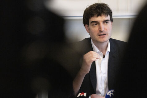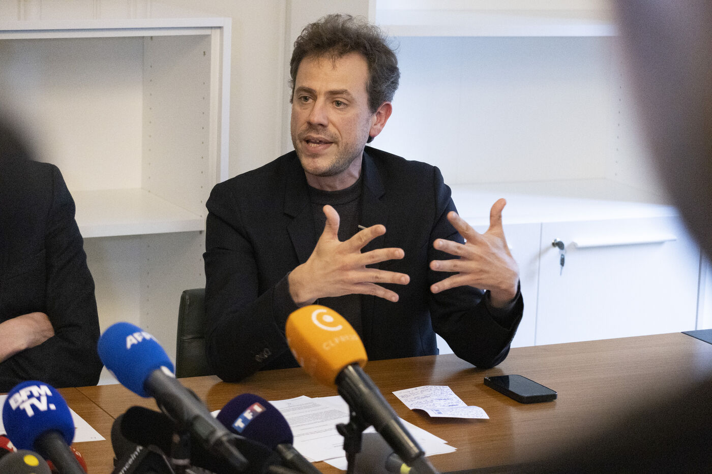 MP Paul Vannier of La France insoumise - Nouveau Front Populaire LFI-NFP during the press conference following the hearing of the MEP La France Insoumise LFI Rima Hassan at the regional headquarters of the Judicial Police of Paris in Paris, France on April 3, 2026.