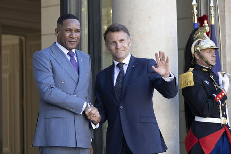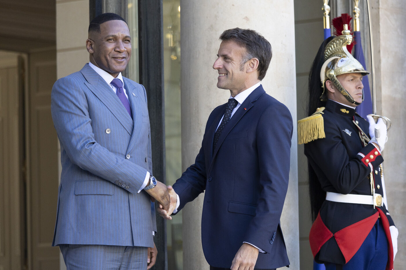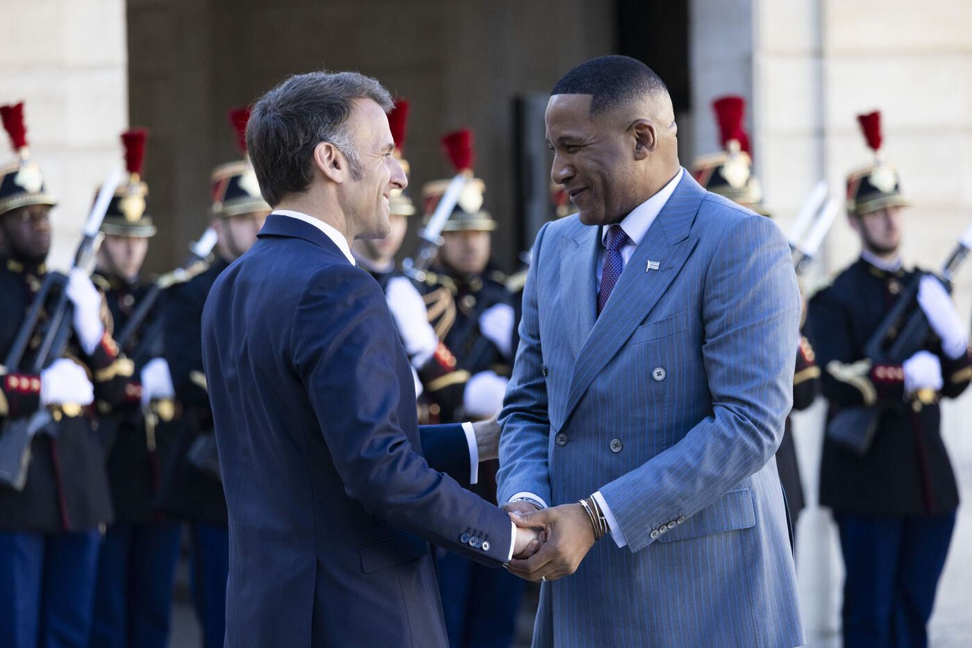 Emmanuel Macron receives President Duma Boko of Botswana at the Élysée Palace