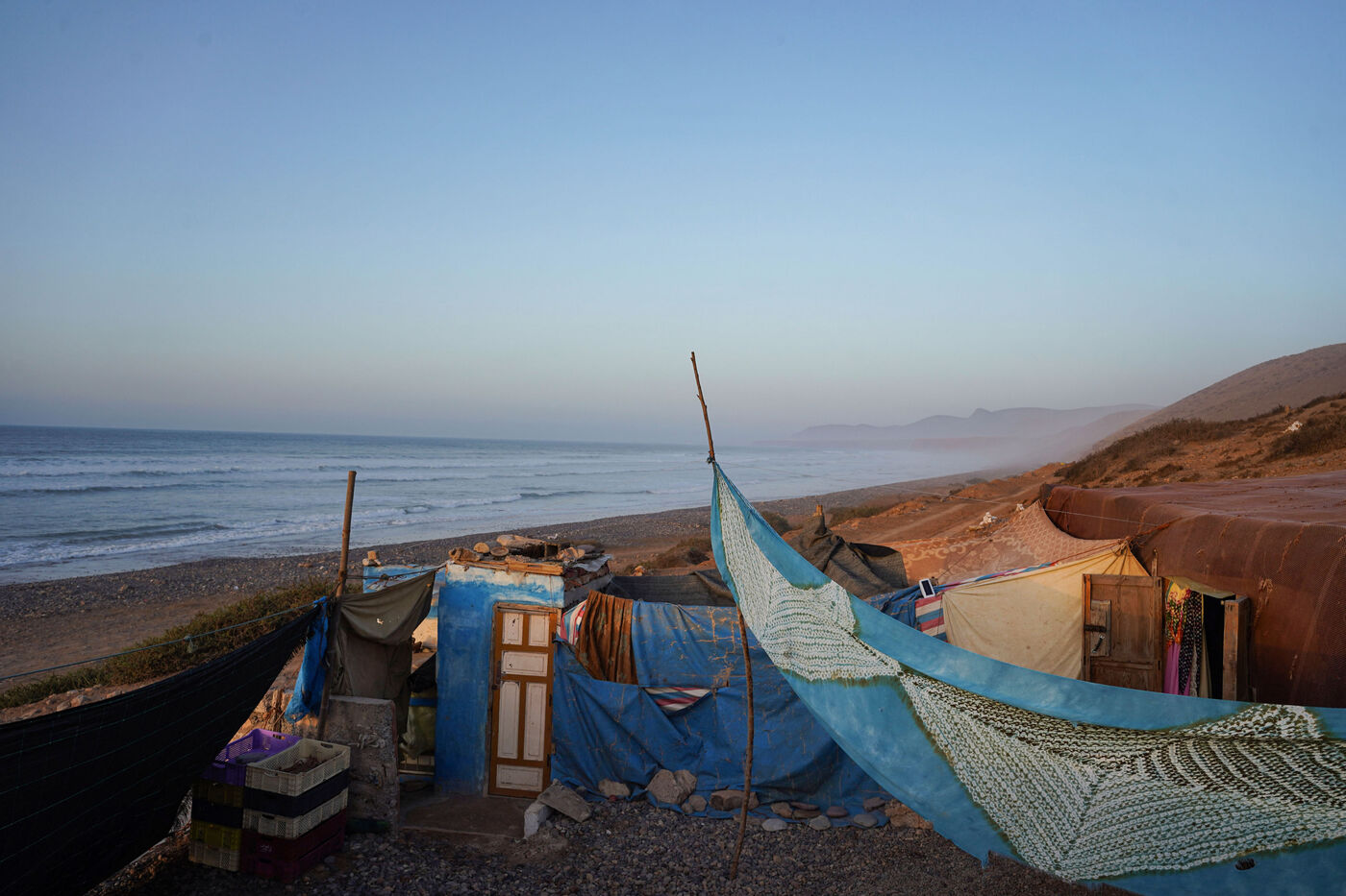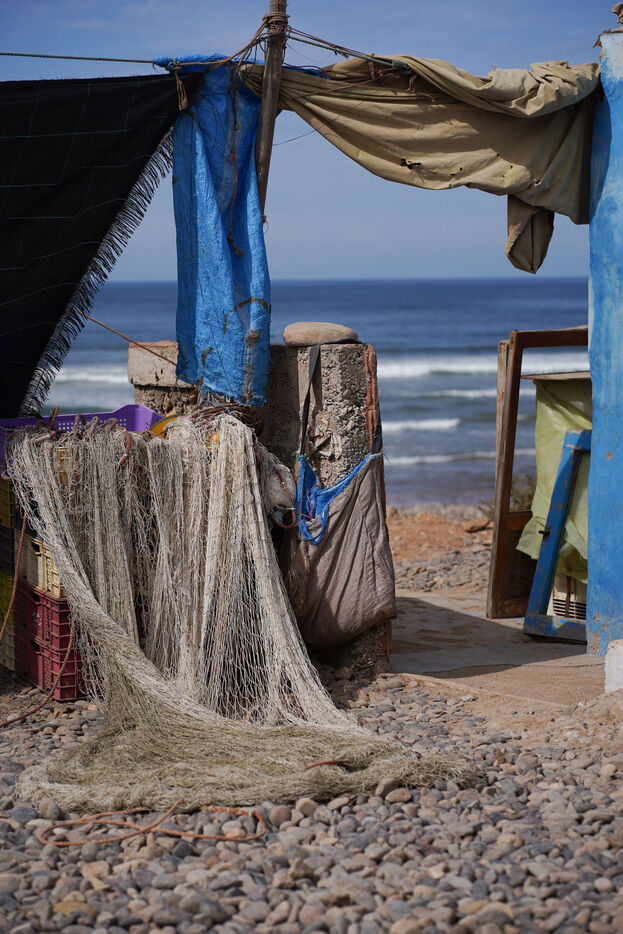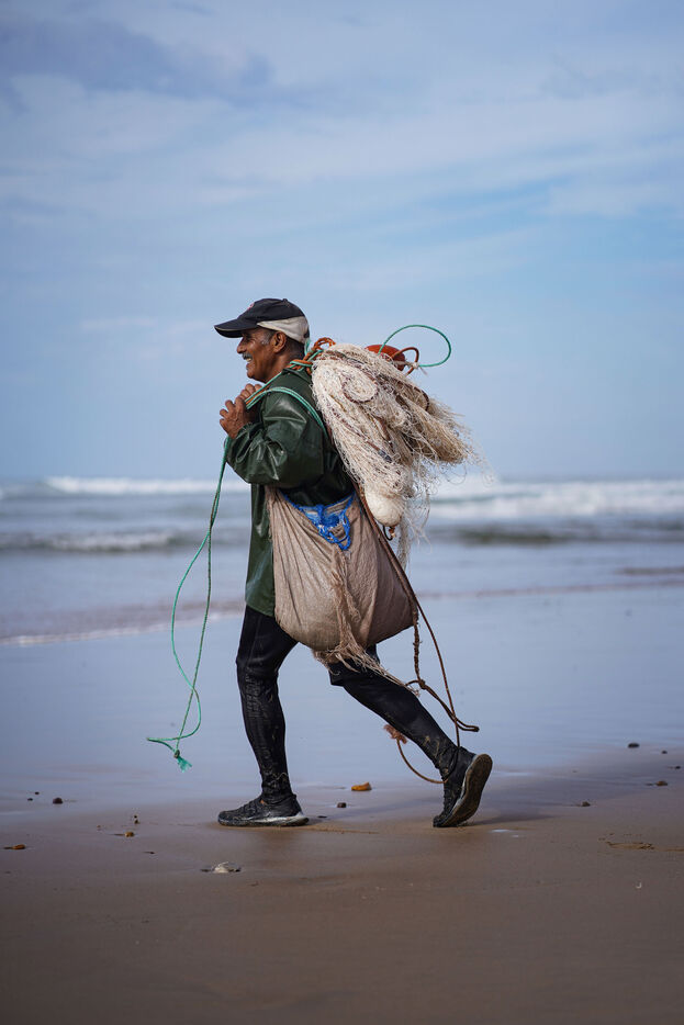 In the arid mountains of the Souss-Massa and on the shores of Sidi Ifni, the Amazigh live to the rhythm of the Earth and Water. Farmers and fishermen, they are the guardians of an ancient balance. Their strength lies in simplicity, their peace in harmony with the living. Here, there is no superfluity, only the essentials. Working the land, sowing, harvesting, fishing, casting out the nets, starting again tirelessly, to the rhythm of the seasons and the cycles of nature. They move forward unhurriedly, knowing that the earth gives when it is respected, that the sea takes when it is forgotten.