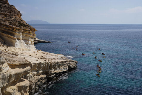 Illustrations of tourism in the Cabo de Gata nature park, in the province of Almeria. Every year it attracts visitors in search of nature and unspoilt landscapes. Hiking trails criss-cross the volcanic cliffs and wild beaches.