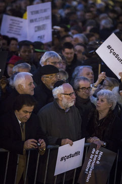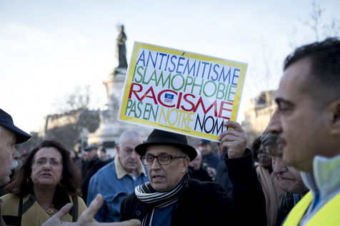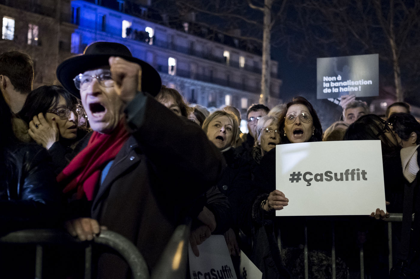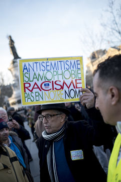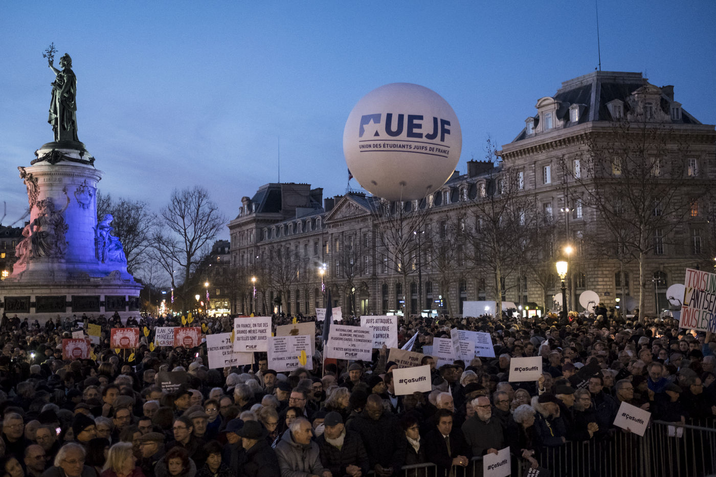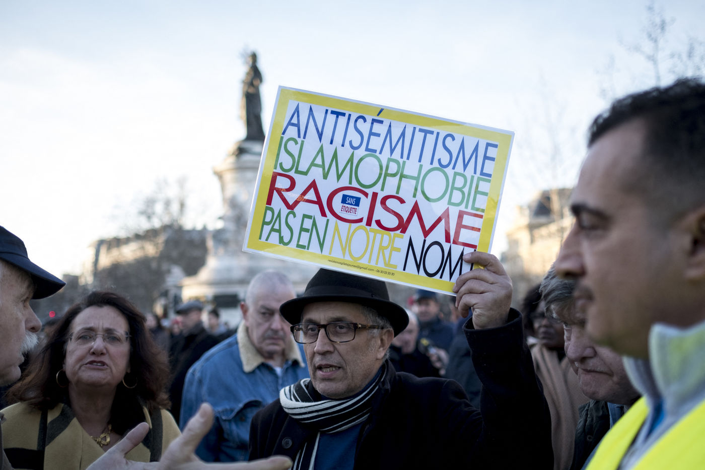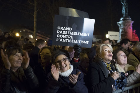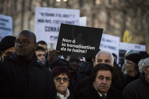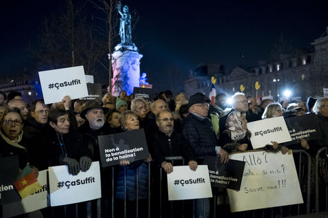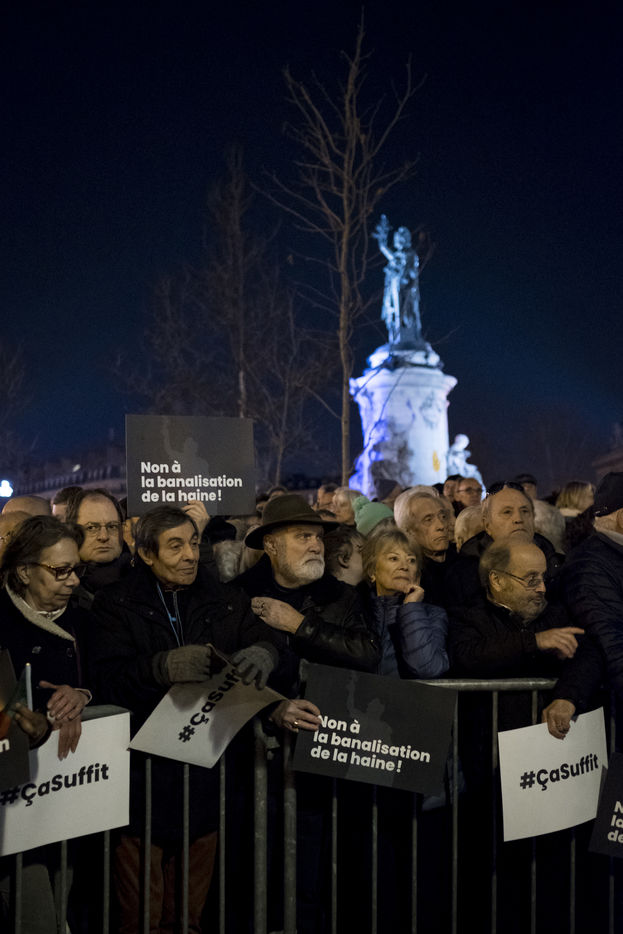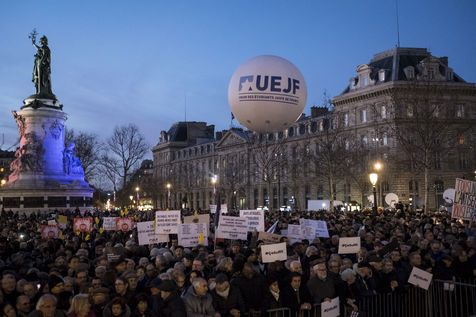 Vingt mille personnes se sont rassemblées Place de la République à Paris à l'appel de la quasi-totalité des organisations politiques pour protester contre la recrudescence des actes antisémites en France.
