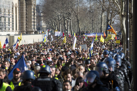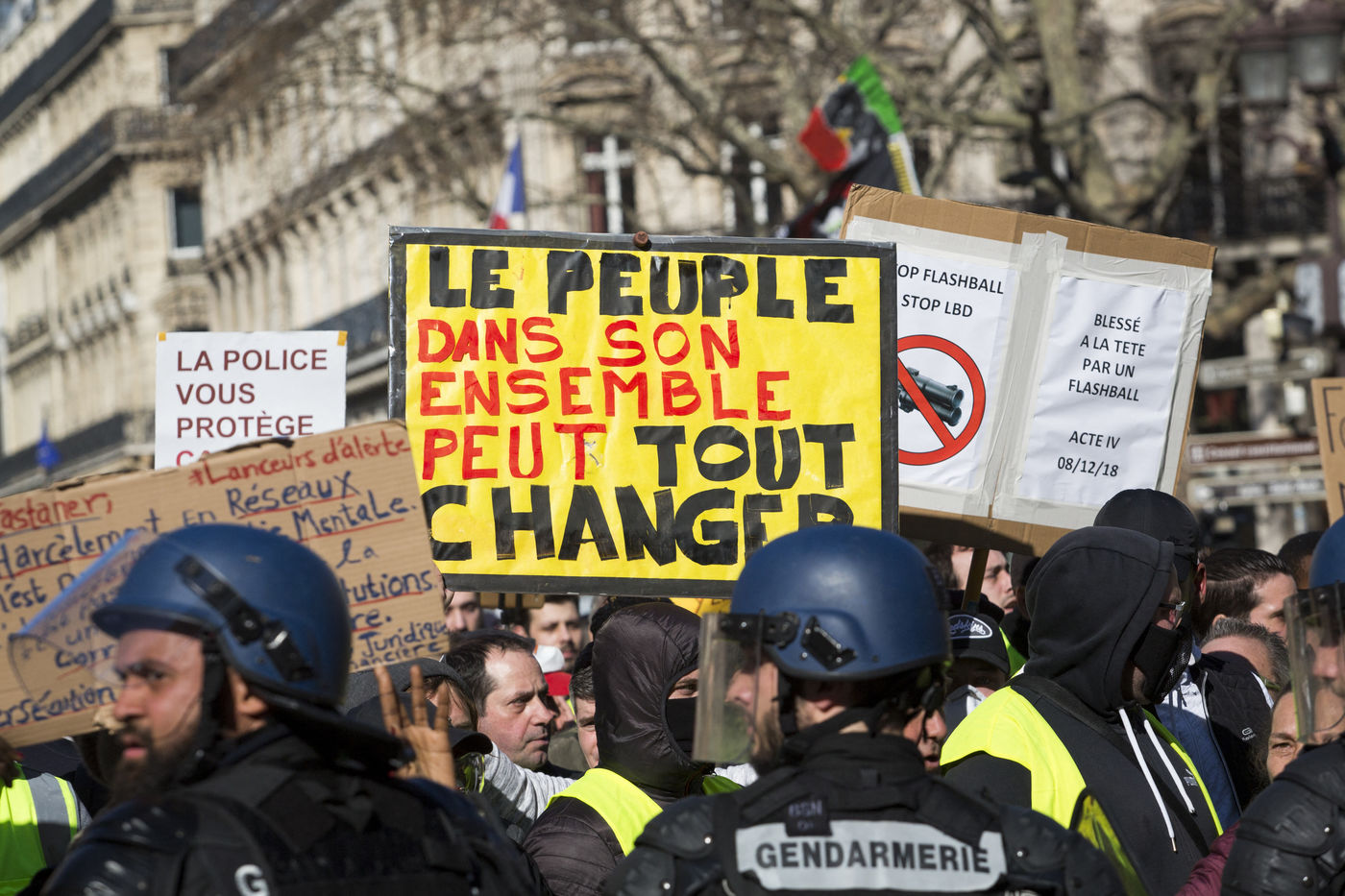 Pour l'Acte XV du mouvement des Gilets Jaunes, le 23 février 2019, plusieurs milliers de personnes ont manifesté à Paris entre la Place de l'Etoile et le Parvis du Trocadéro.
