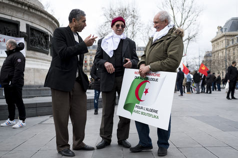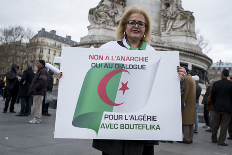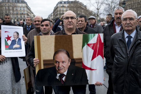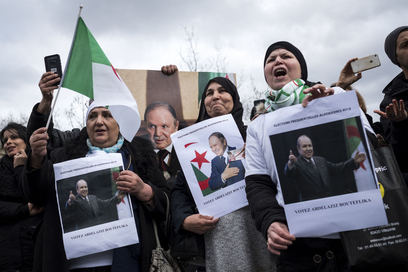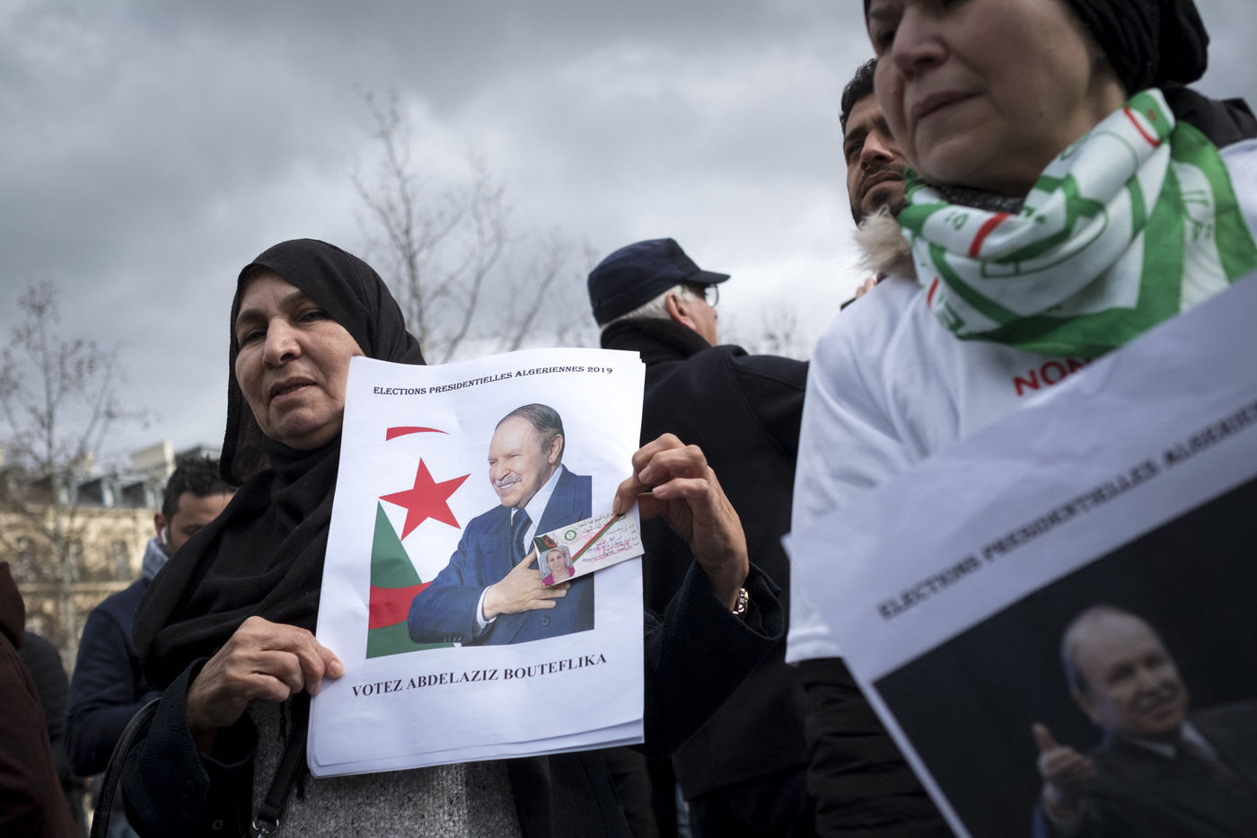 Plusieurs dizaines de partisans du Président algérien Abelaziz Bouteflika se sont réunis Place de la République à Paris, le samedi 2 mars 2019, pour défendre sa candidature à un cinquième mandat, alors que cette annonce a provoqué des manifestations monstres dans toute l'Algérie depuis une dizaine de jours.