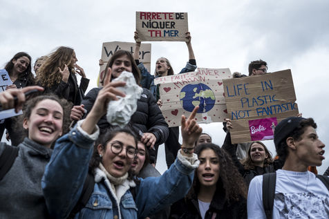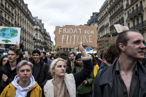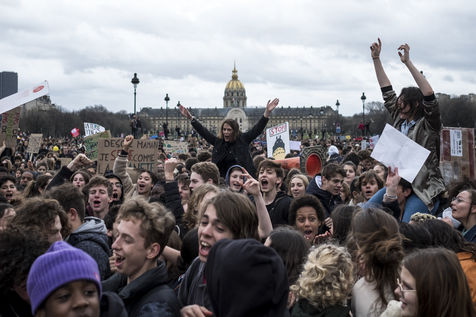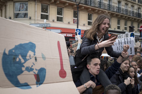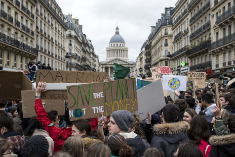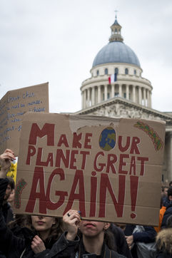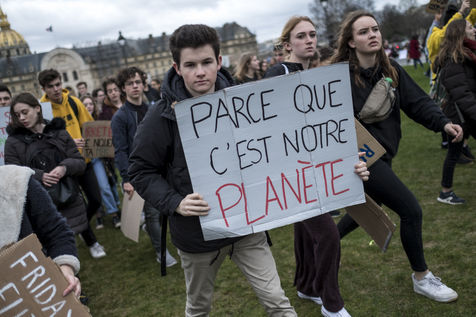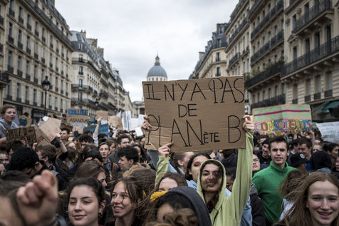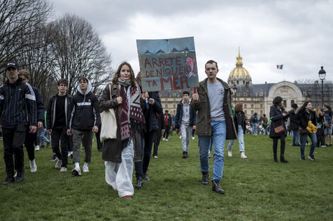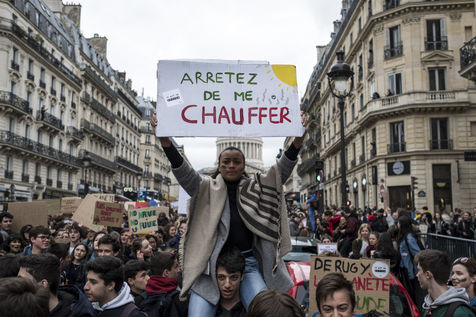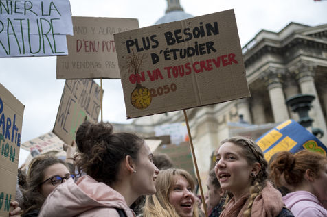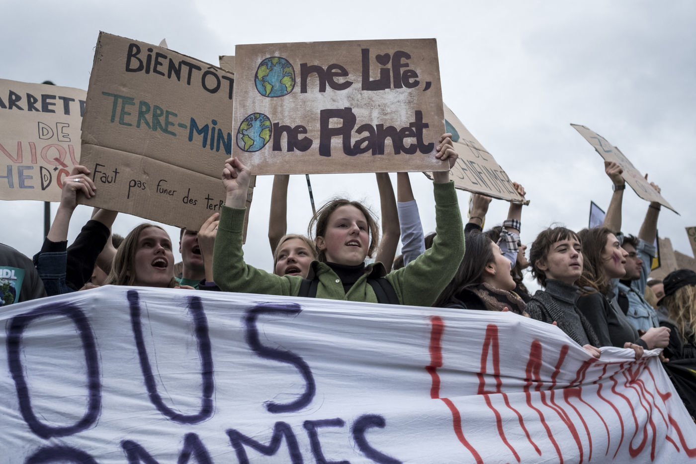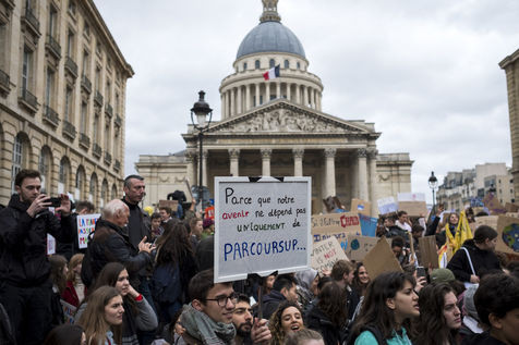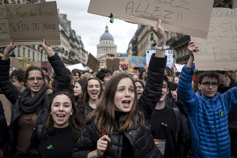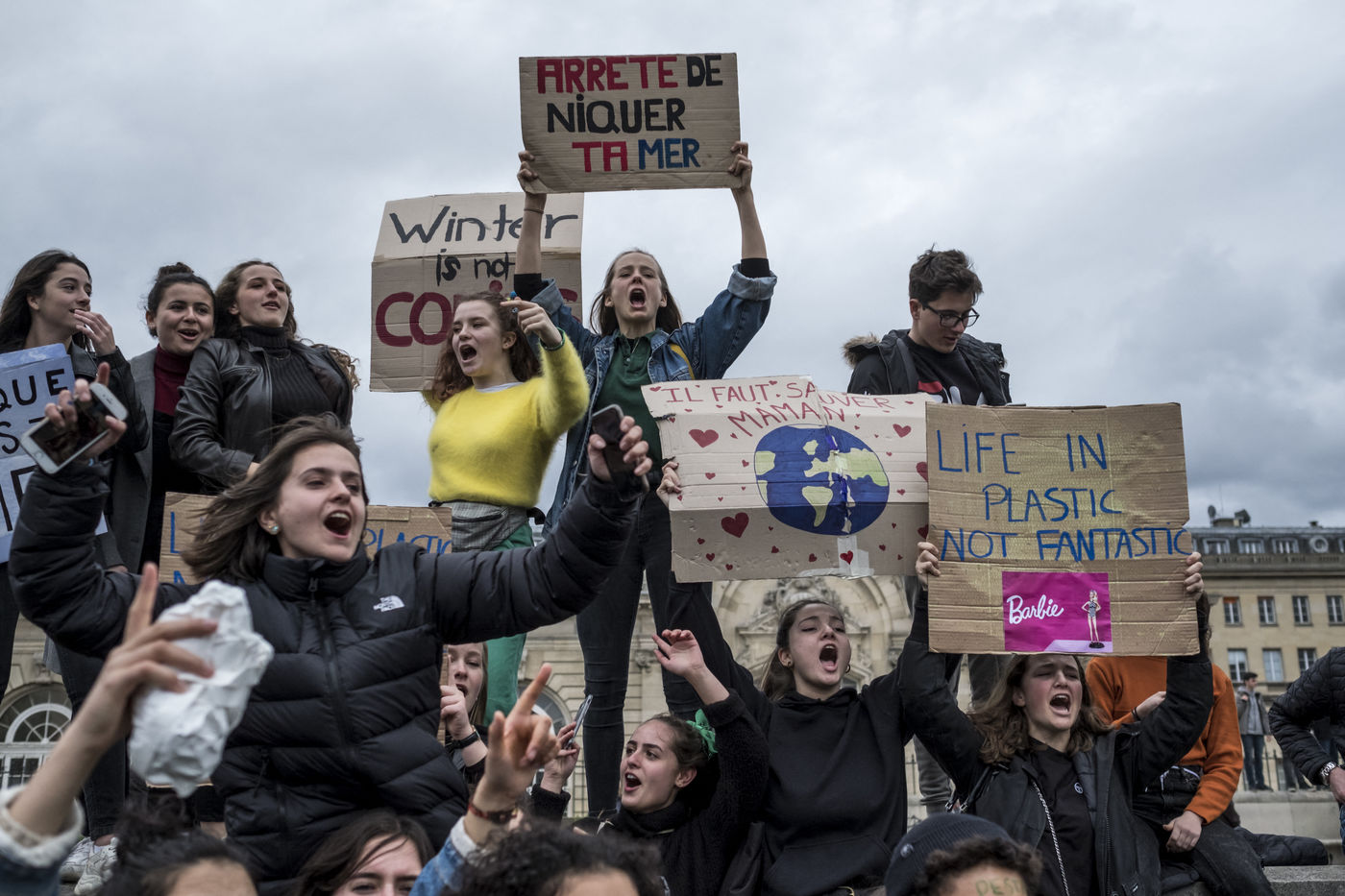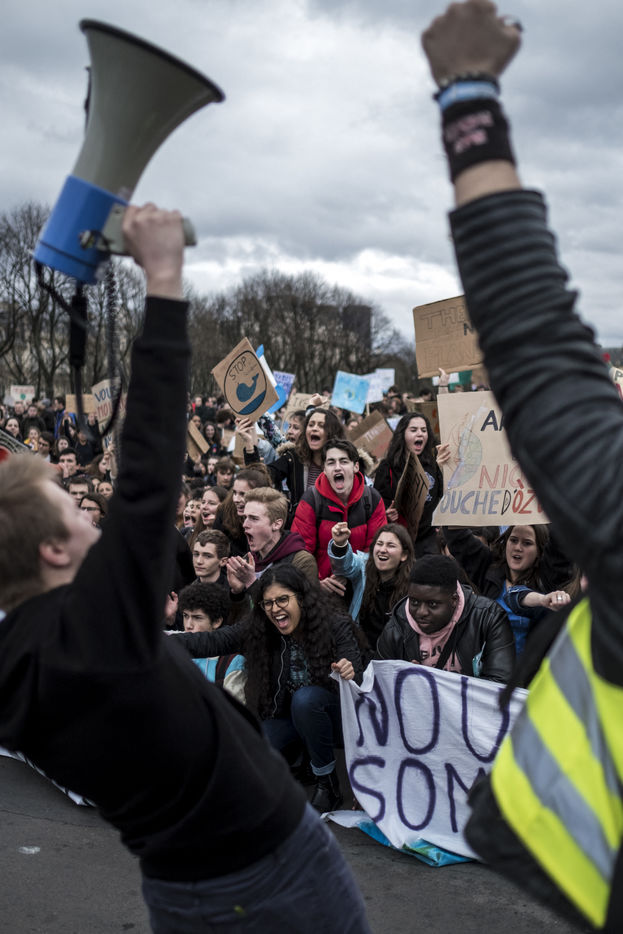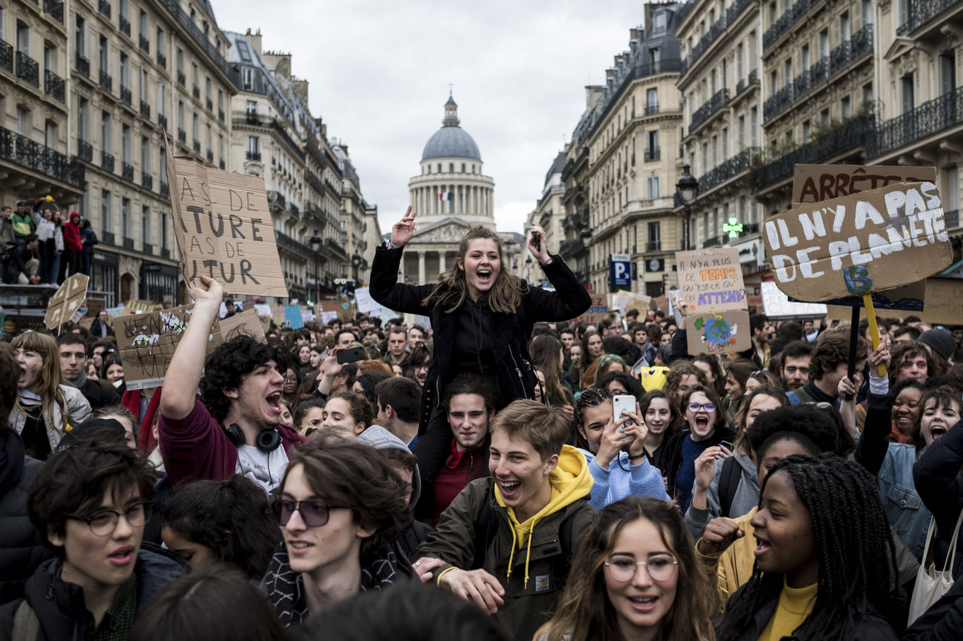 Paris, le 15 mars 2019. Plusieurs dizaines de milliers de jeunes, lycéens, étudiants, ainsi que des militants ecologistes ont manifesté à Paris entre le Panthéon et l'esplanade des Invalides, dans le cadre de la journée de "grève mondiale pour le climat", initié notamment par la jeune militante suédoise Greta Thunberg.