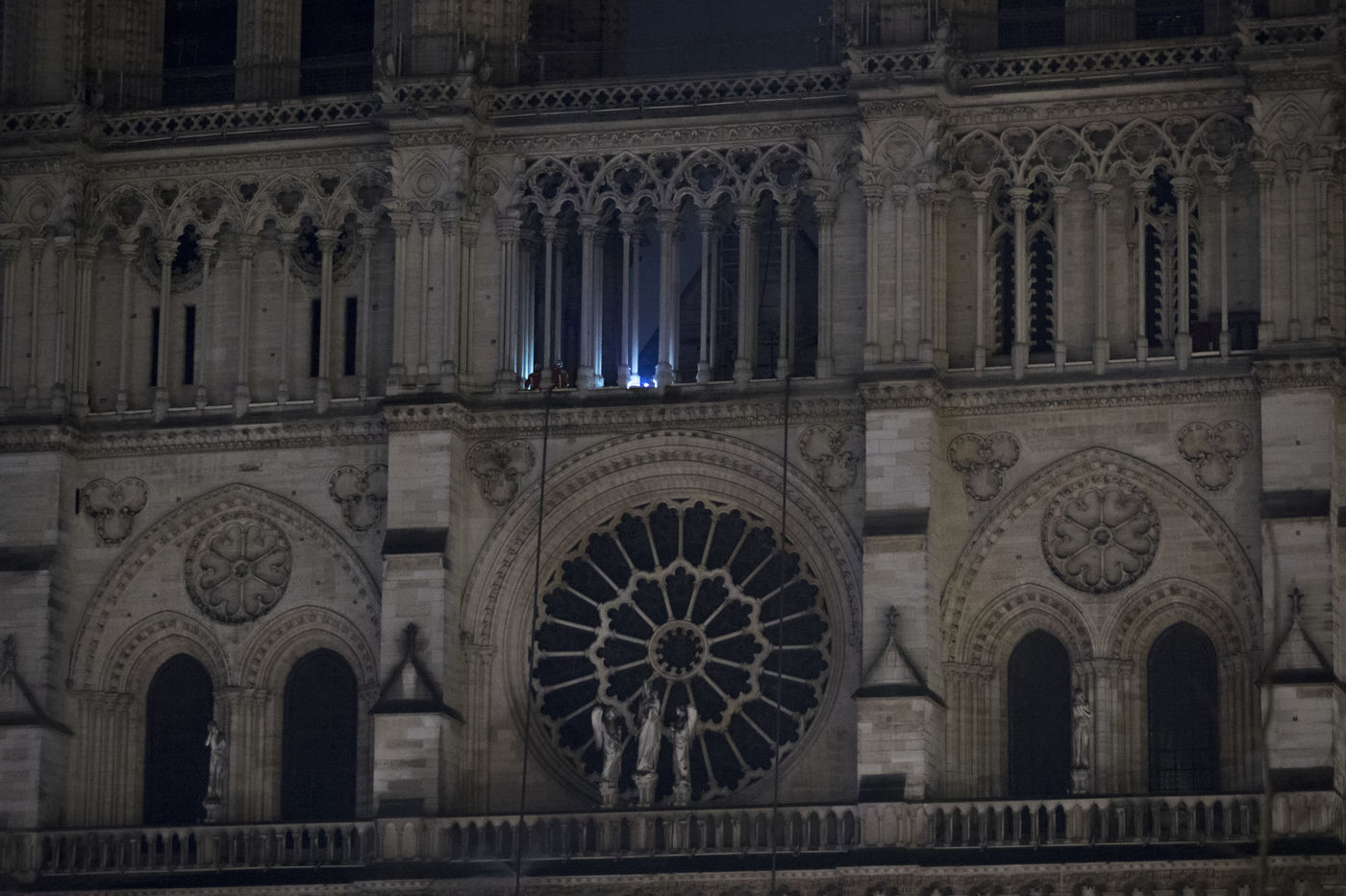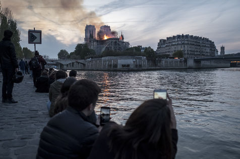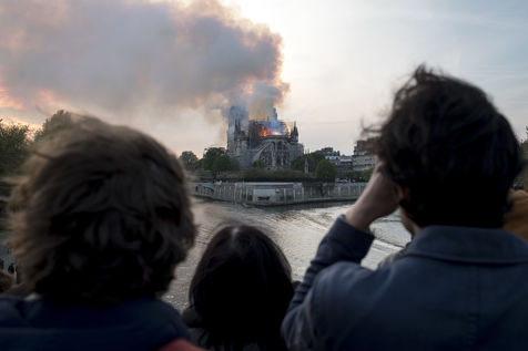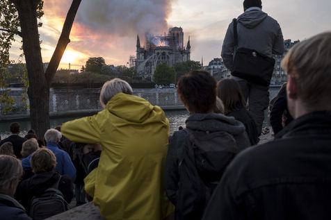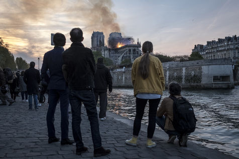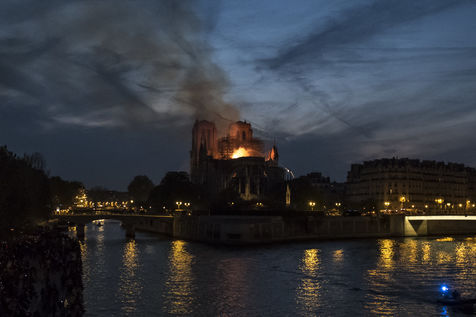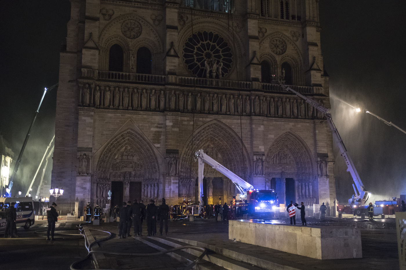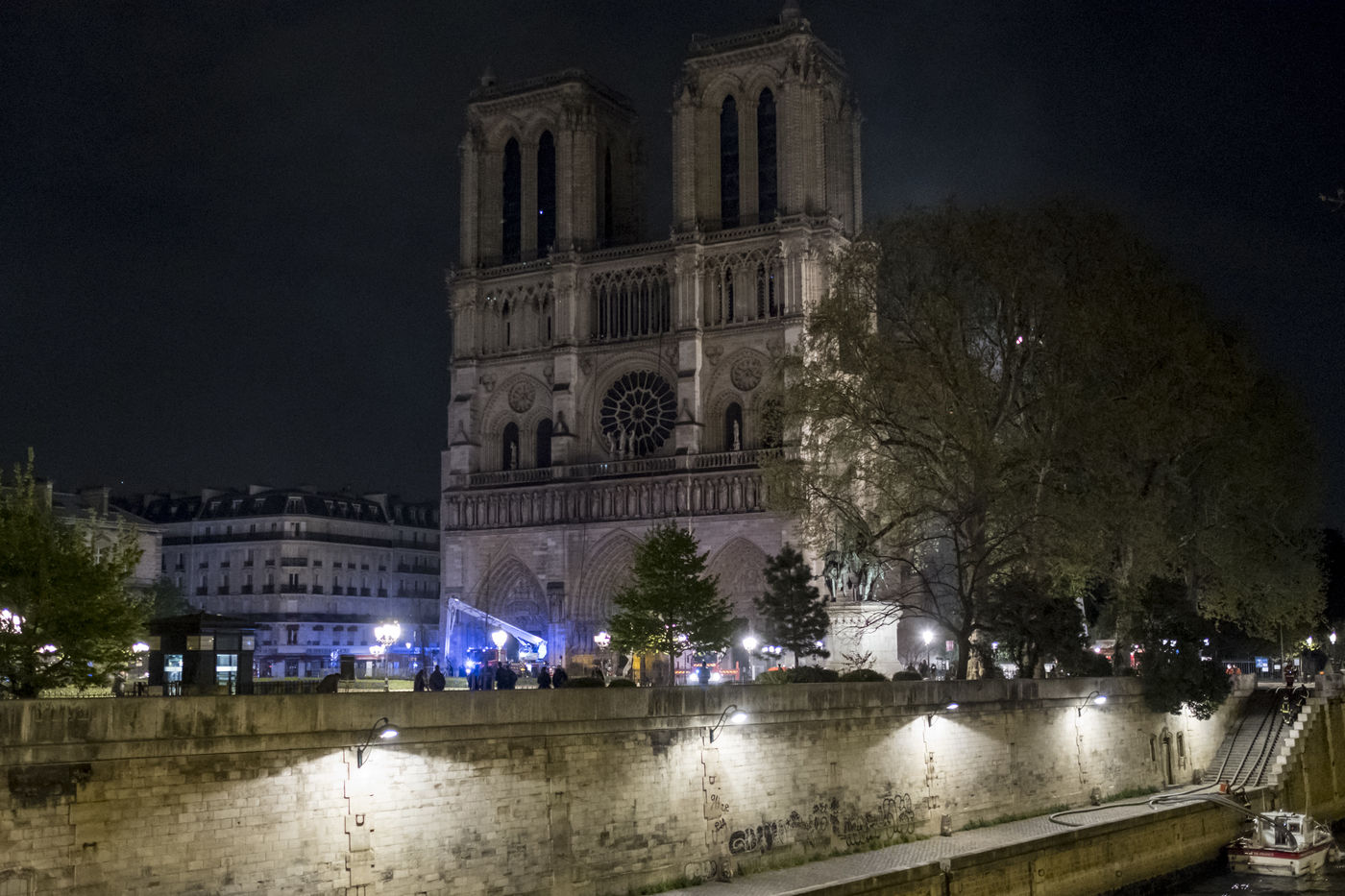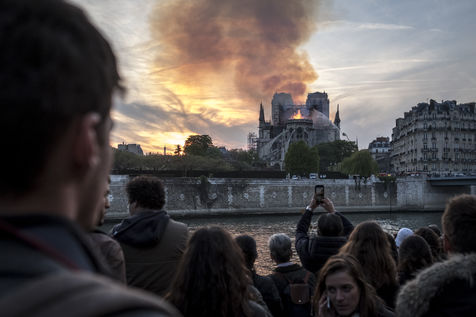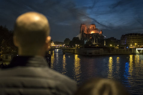 Paris, le 15 avril 2019. Un incendie s'est déclenché sous les combles du toit de Notre Dame de Paris, se propageant rapidement à l'ensemble de la charpente. Près de 500 pompiers lutteront jusque dans la nuit pour enrayer la propagation de l'incendie, sous l'oeil de centaines de parisiens et de touristes, sauvant ainsi un des monuments les plus emblématiques de Paris, vieux de plus de 800 ans.