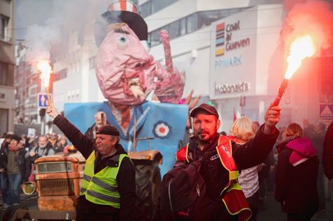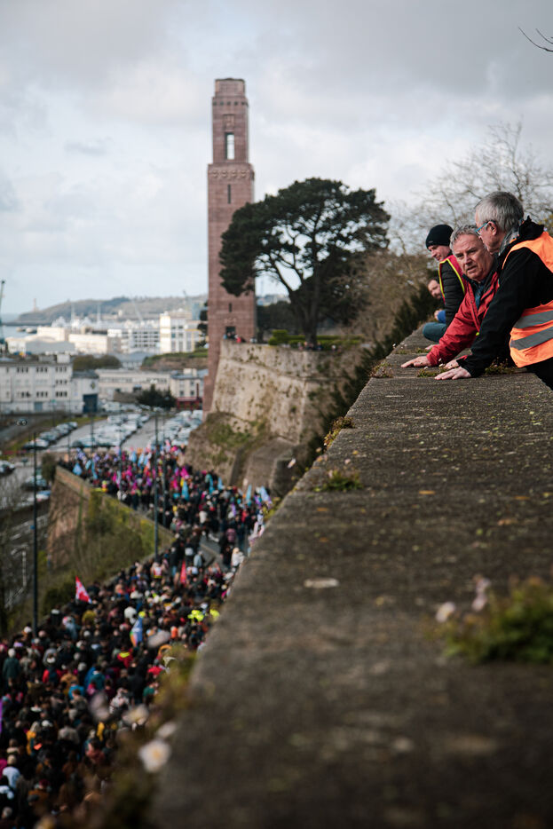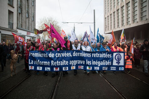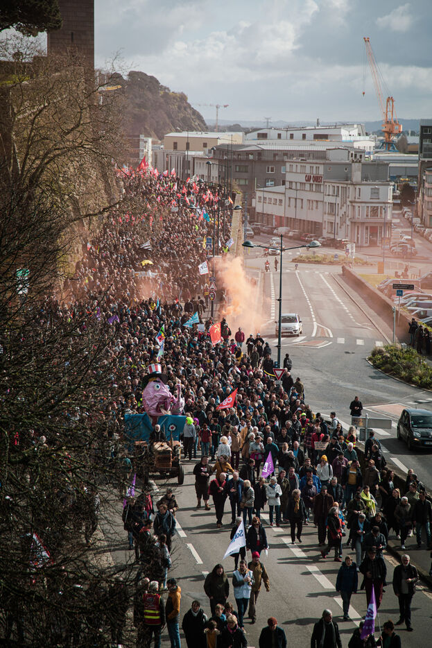 Inter-union demonstration against pension reform in Brest on 06/04/2023.