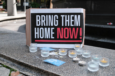 Rally in Clermont Ferrand with “Bring Them Home Now!” posters on Sunday, October 6, 2024.