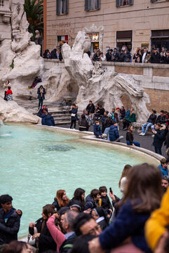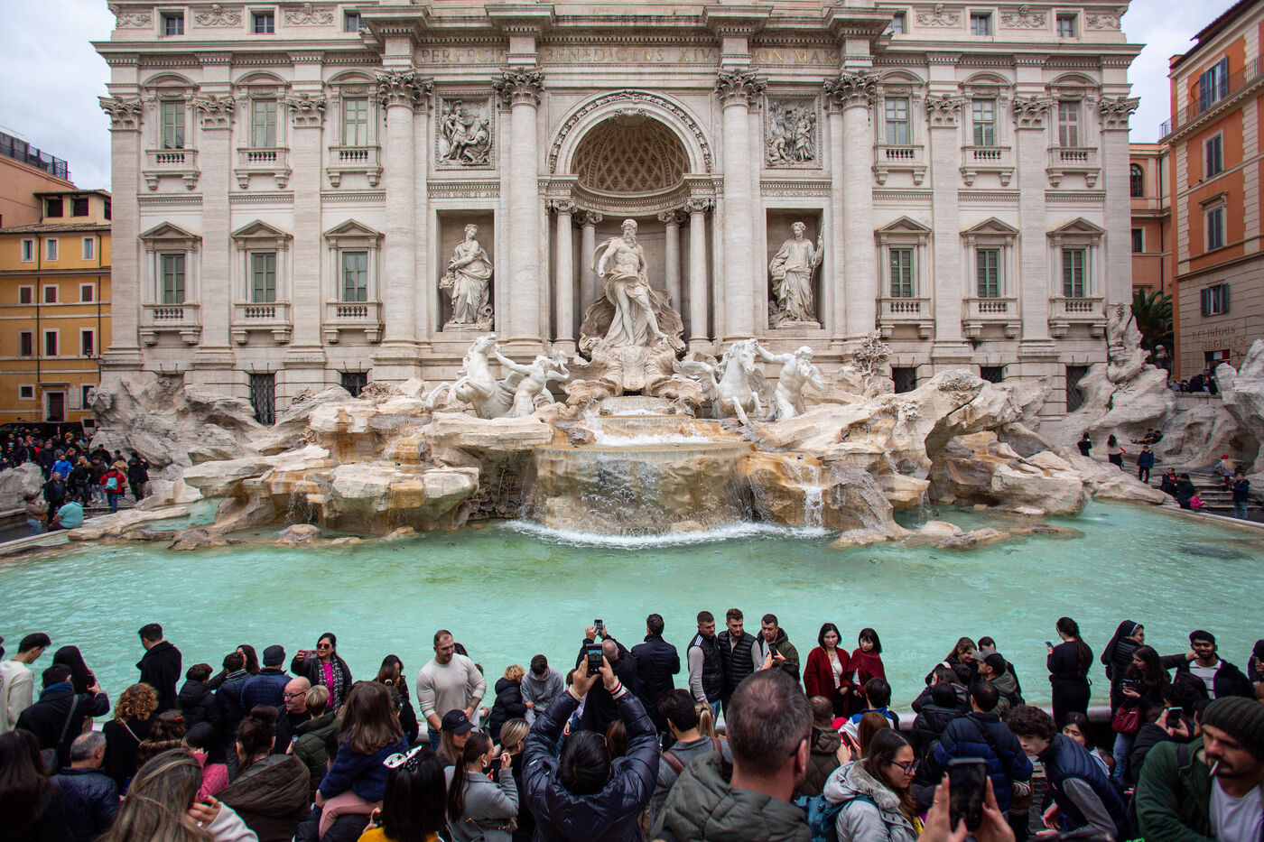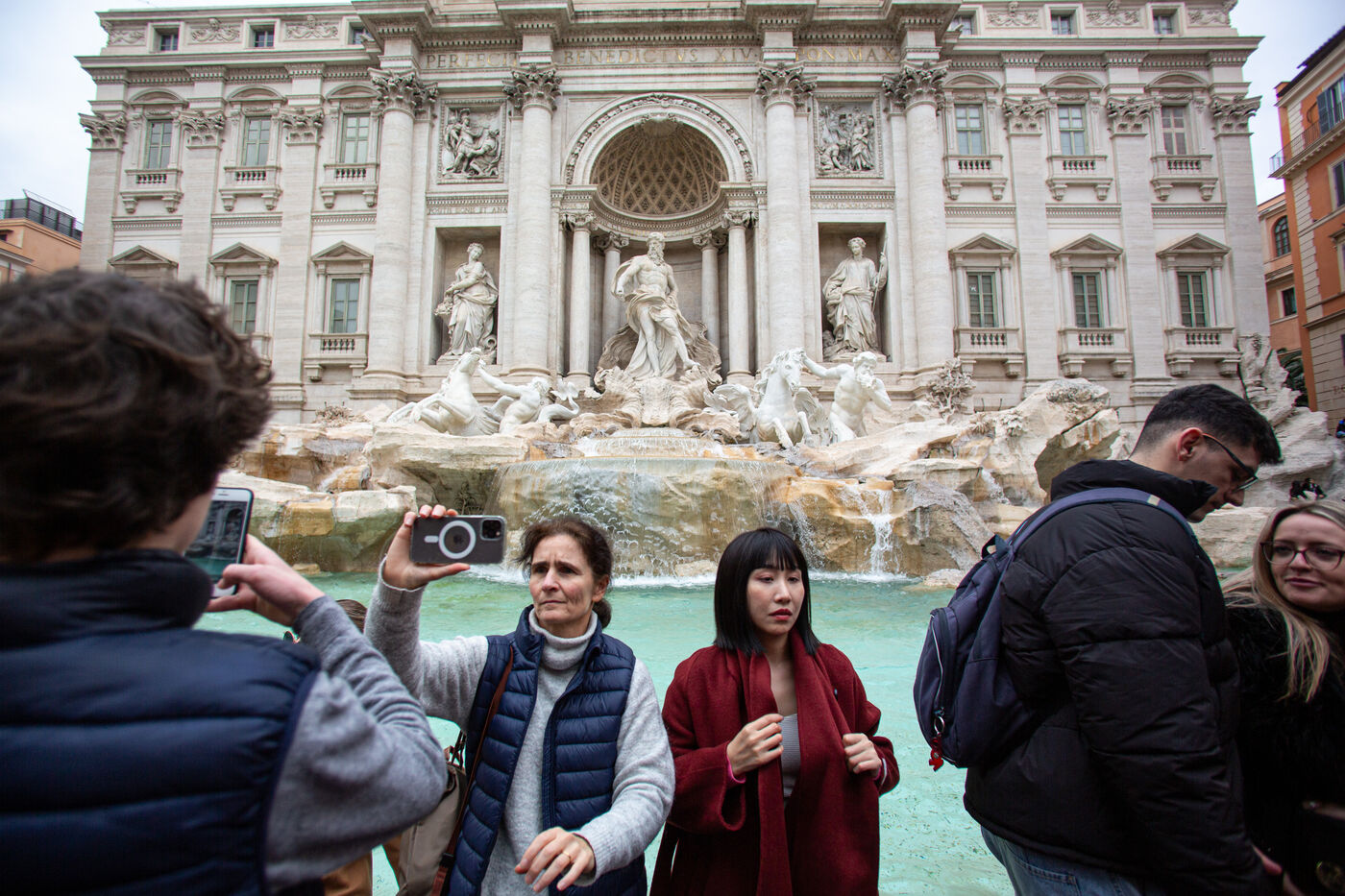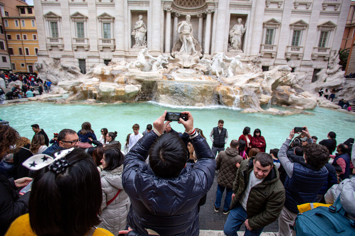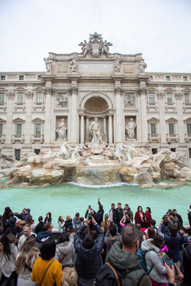Illustration of Rome's Trevi Fountain, a symbol of over-tourism. According to Alessandro Onorato, Rome's deputy mayor in charge of tourism, access to the fountain could be regulated, subject to payment and reservation, by the 2025 jubilee.