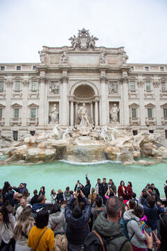 Photographie d'illustration de la fontaine de Trevi à Rome, Symbole du sur-tourisme, l'accès a la fontaine pourrait être règlementé, payant et sur réservation d'ici au jubile de 2025, d'après Alessandro Onorato, adjoint charge du tourisme a la mairie de Rome.