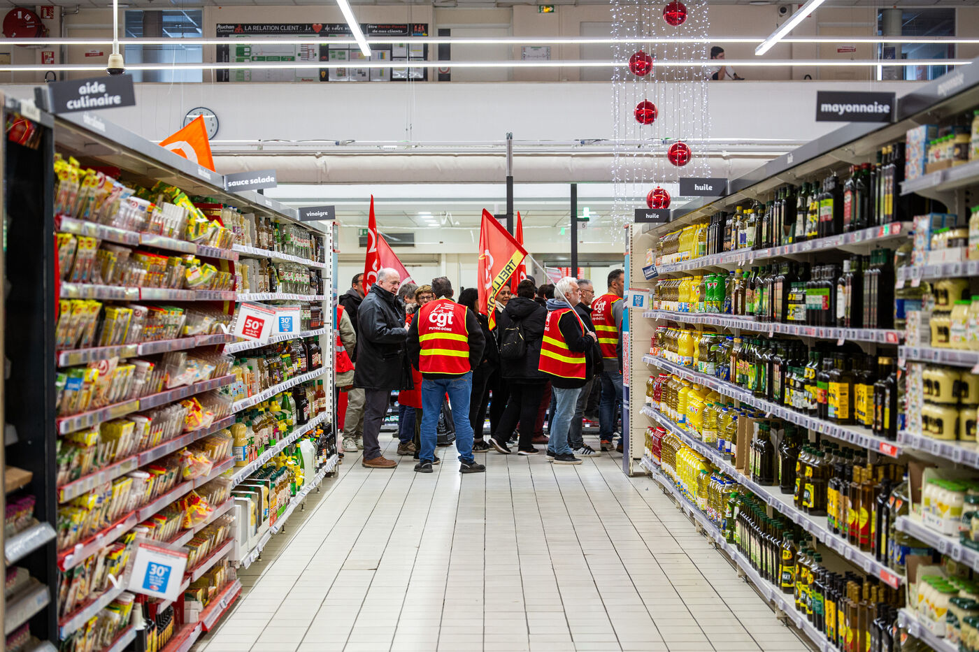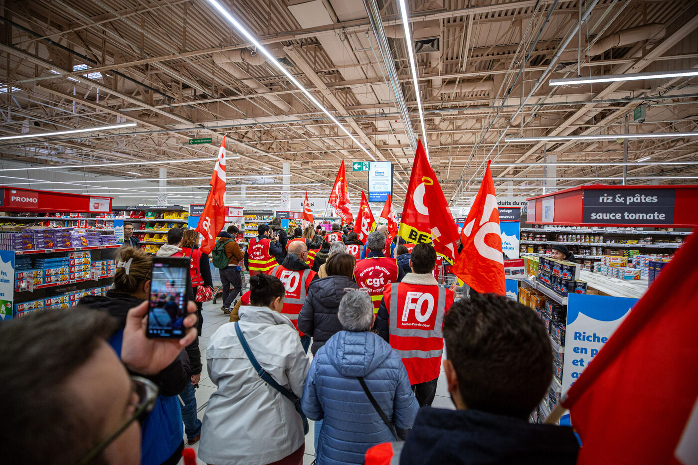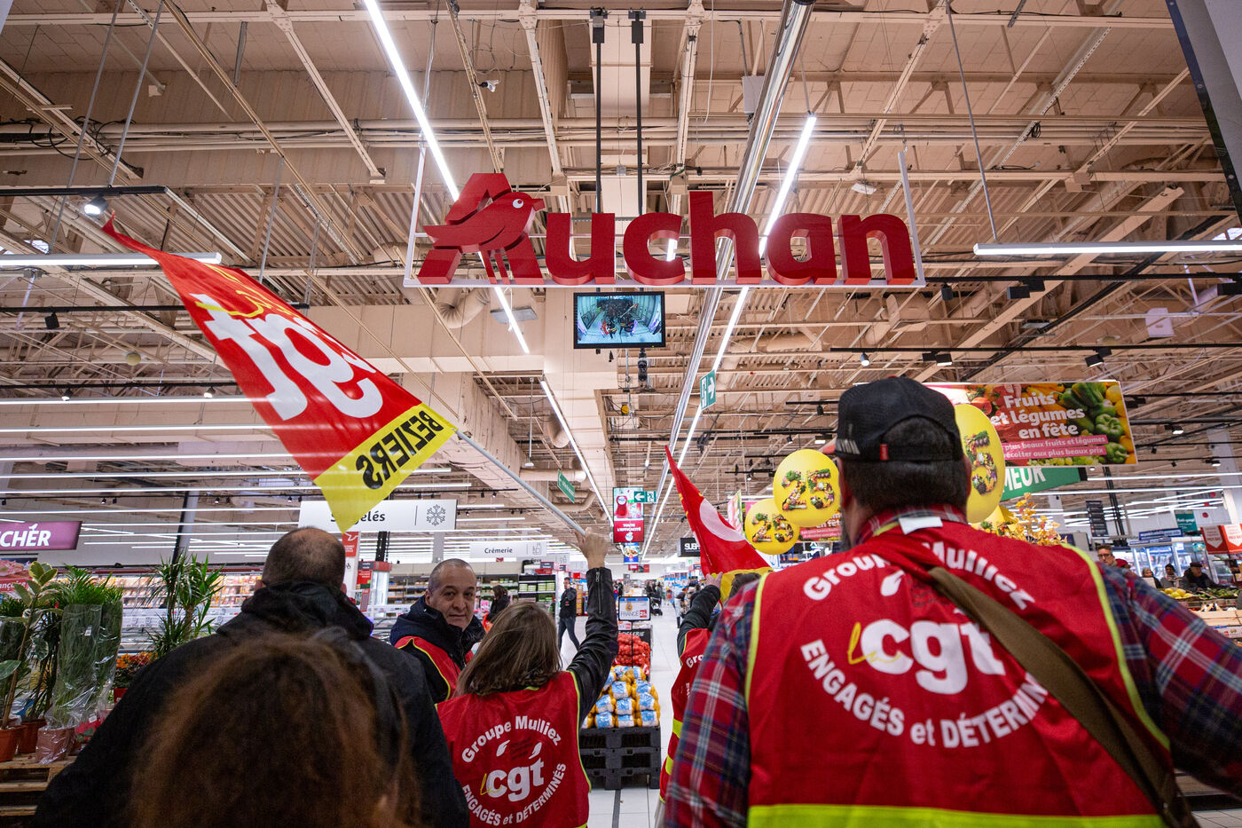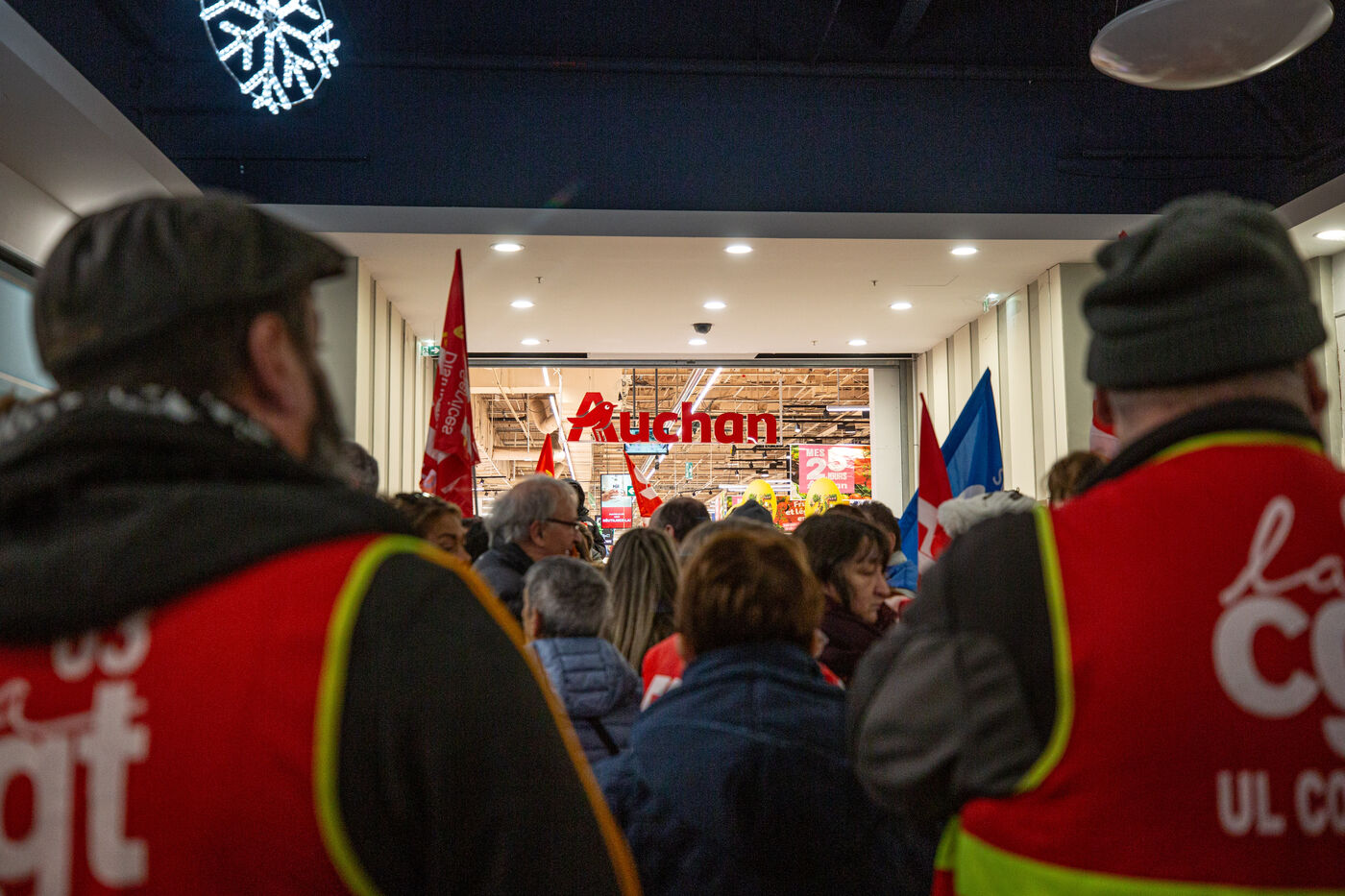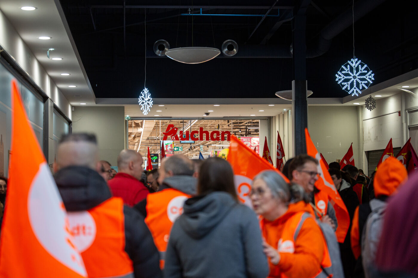 Inter-union rally at the Auchan Nord store in Clermont-Ferrand, following the announcement of the store's closure in six months' time.