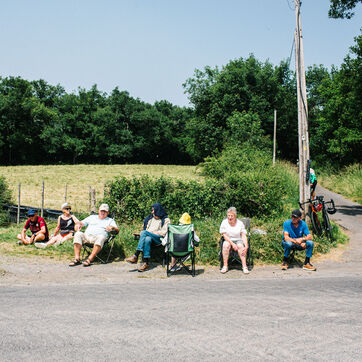 L’ambiance était conviviale, entre chaises pliantes, jeux de cartes, parasols et enfants perchés sur les épaules. L’étape, marquée par un rythme soutenu, a filé en quelques secondes au sommet du col de la Croix des Gardes.
