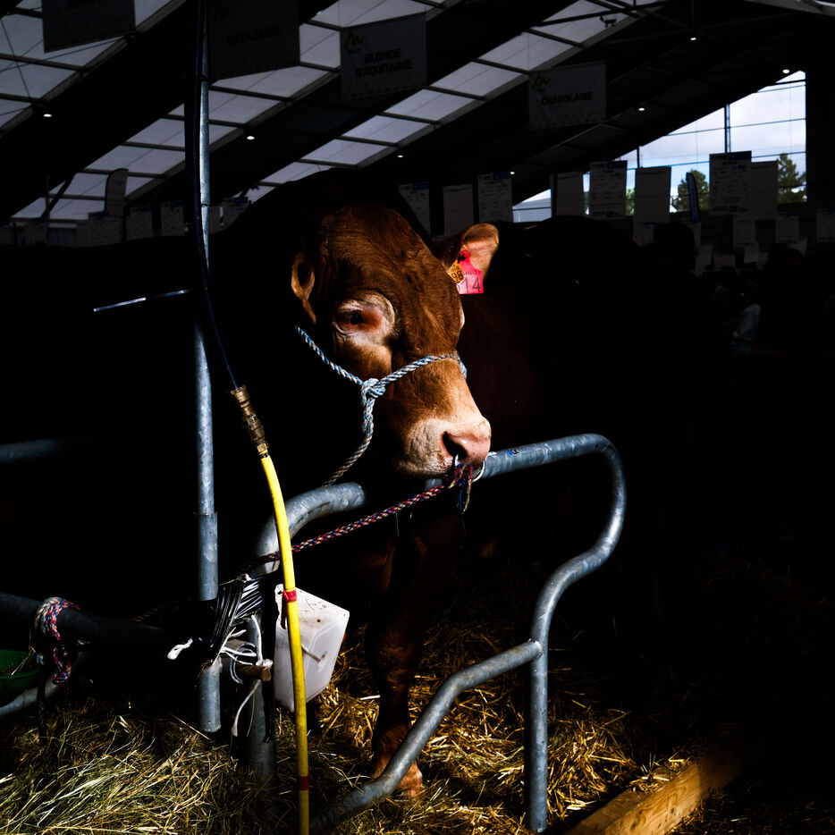Through this photographic series, I offer an immersion at eye level — both human and animal — behind the scenes of the event. From bovine gazes to handshakes, from breed competitions to political speeches, each image seeks to reflect the ambivalence of this space: at once a showcase, a stage, a marketplace, and a site of debate.