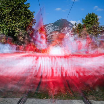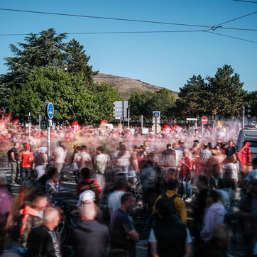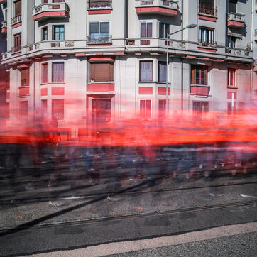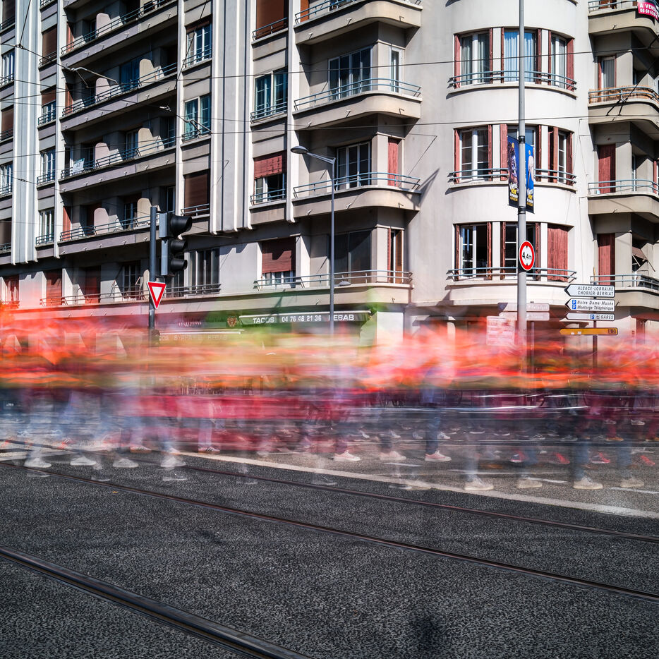 This photo series was shot using an ND filter and long exposure during a day of inter-union mobilization against the government's social and economic policies, joined by the "Bloquons Tout" movement in Clermont-Ferrand. By capturing the blur of moving bodies, the images visually convey the collective force and persistence of protest within the urban landscape.