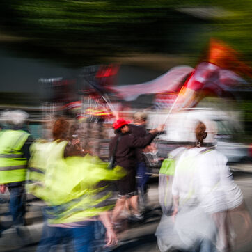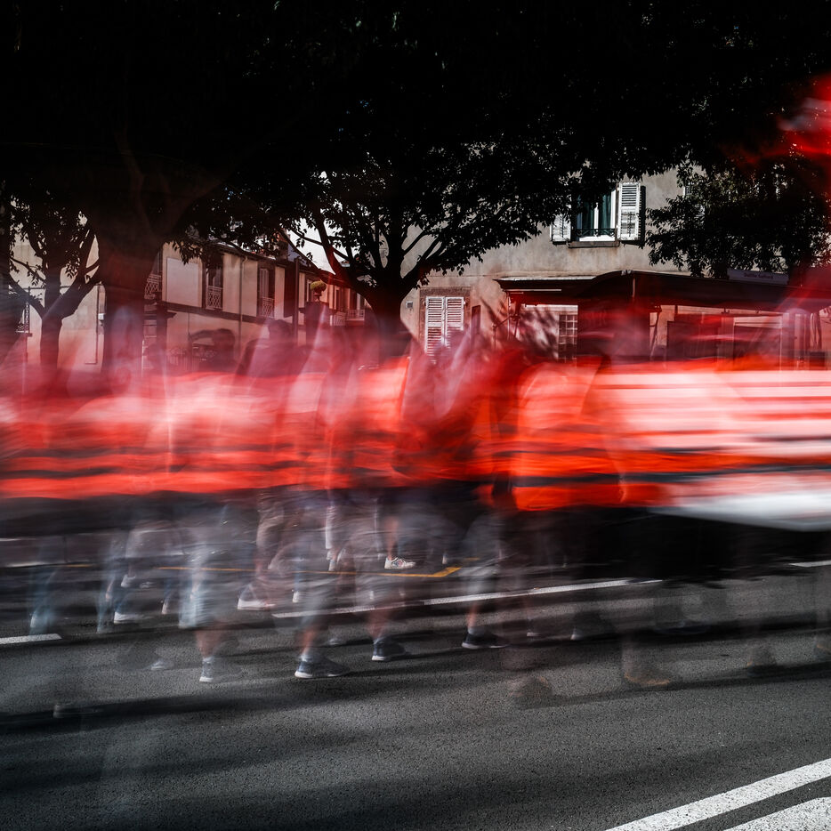 Cette série photographique a été réalisée avec un filtre ND et un temps de pose long, lors d’une journée de mobilisation intersyndicale contre les politiques sociales et économiques du gouvernement, rejointe par le mouvement "Bloquons Tout" à Clermont-Ferrand. En captant le flou des corps en mouvement, les images traduisent visuellement la force collective et la persistance du geste protestataire dans l’espace urbain.