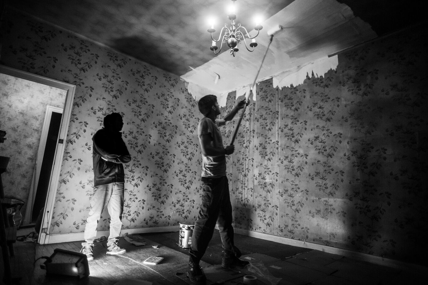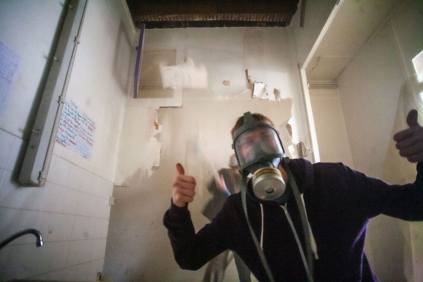 Quand la procédure légale est lancée — cette parenthèse qui suspend provisoirement l’expulsion — les premiers gestes sont ceux du soin : nettoyer, réparer, bricoler. Parfois il suffit d’un coup de balai ; parfois, c’est de l’excavation archéologique dans un monde figé depuis son abandon. Un ancien bureau devient une chambre, une chambre une cuisine, ou un appartement entier une salle de concert.