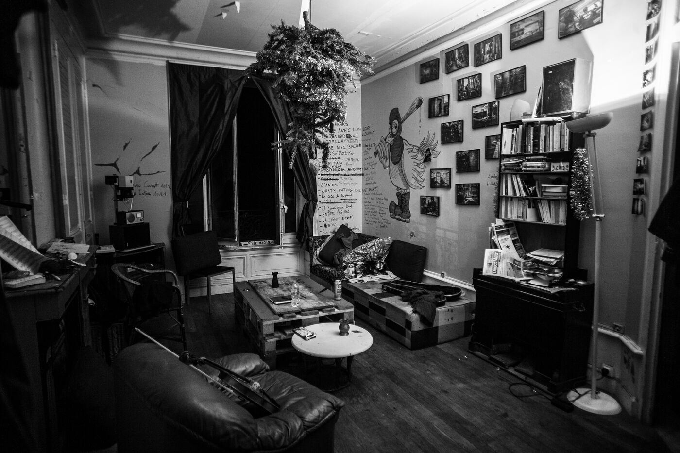 Once the legal procedure begins — that brief window that temporarily suspends eviction — the first gestures are those of care: cleaning, repairing, tinkering. Sometimes a broom is enough; other times it’s more like an archaeological excavation of a world frozen since its abandonment. An old office becomes a bedroom, a bedroom turns into a kitchen, or a whole apartment transforms into a concert hall.