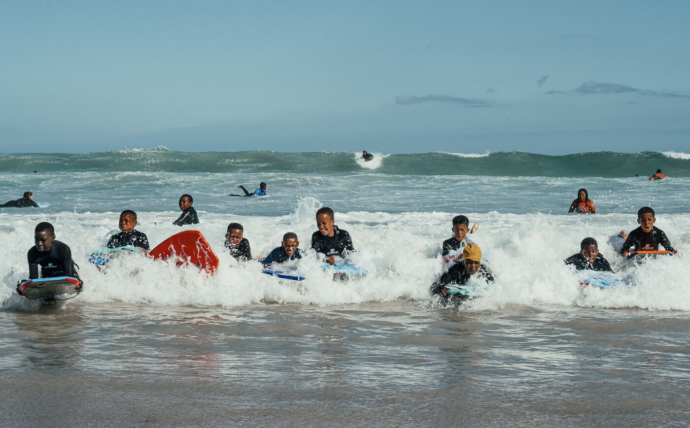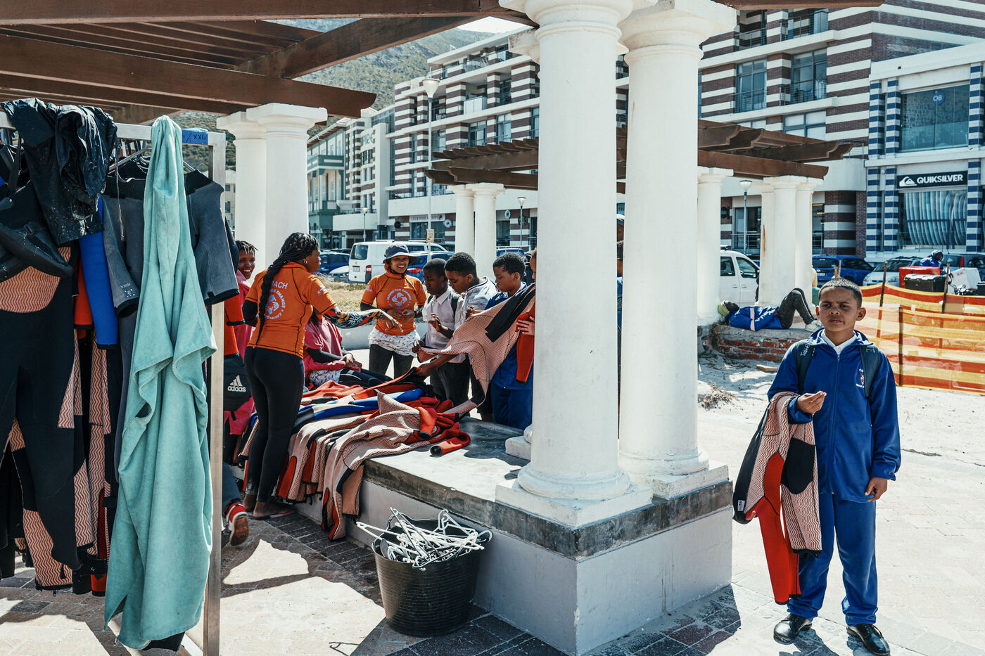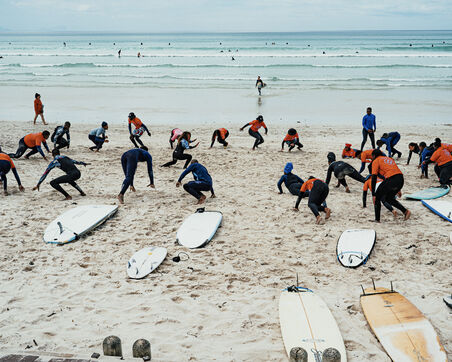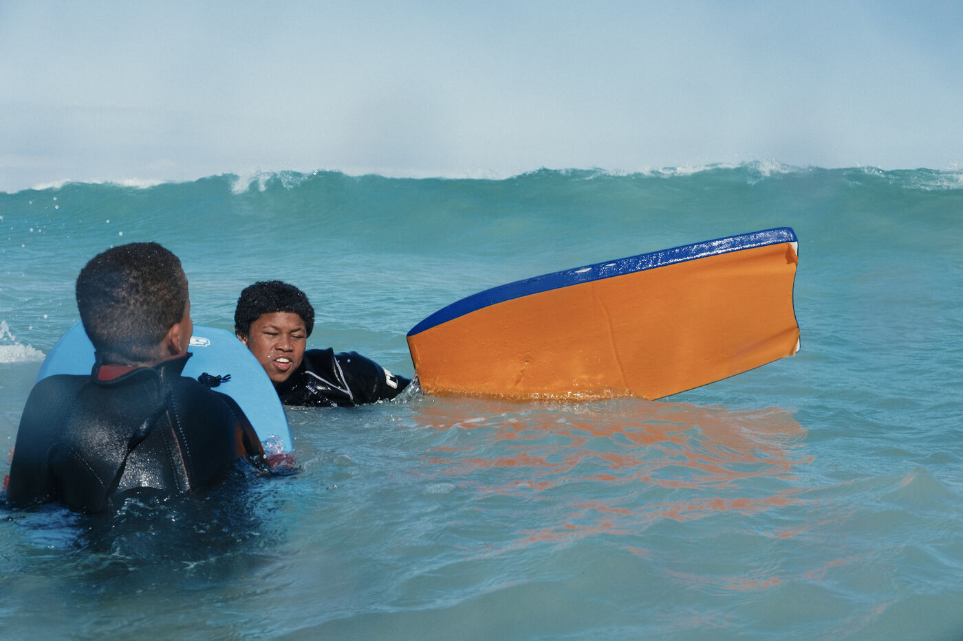 In Cape Town, on Muizenberg Beach, once forbidden to non-white populations, the ocean has become a place of reconstruction. Children and teenagers from neighboring townships participate in “Surf Therapy” sessions.