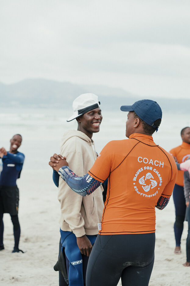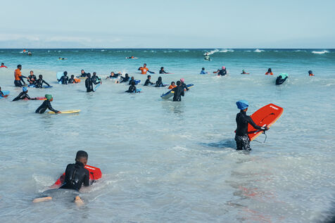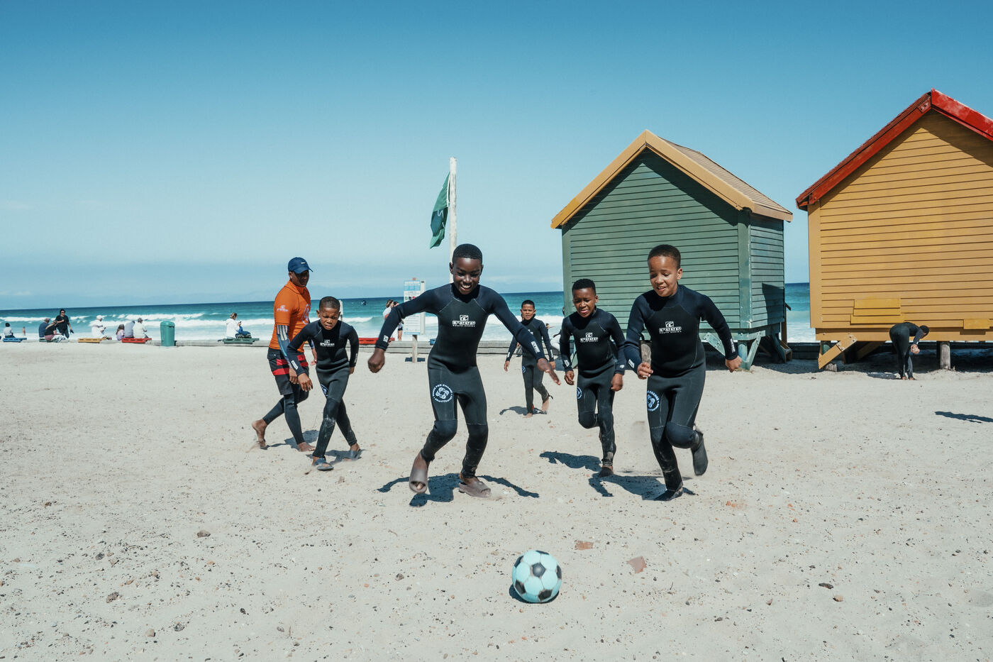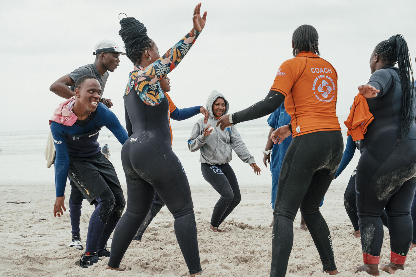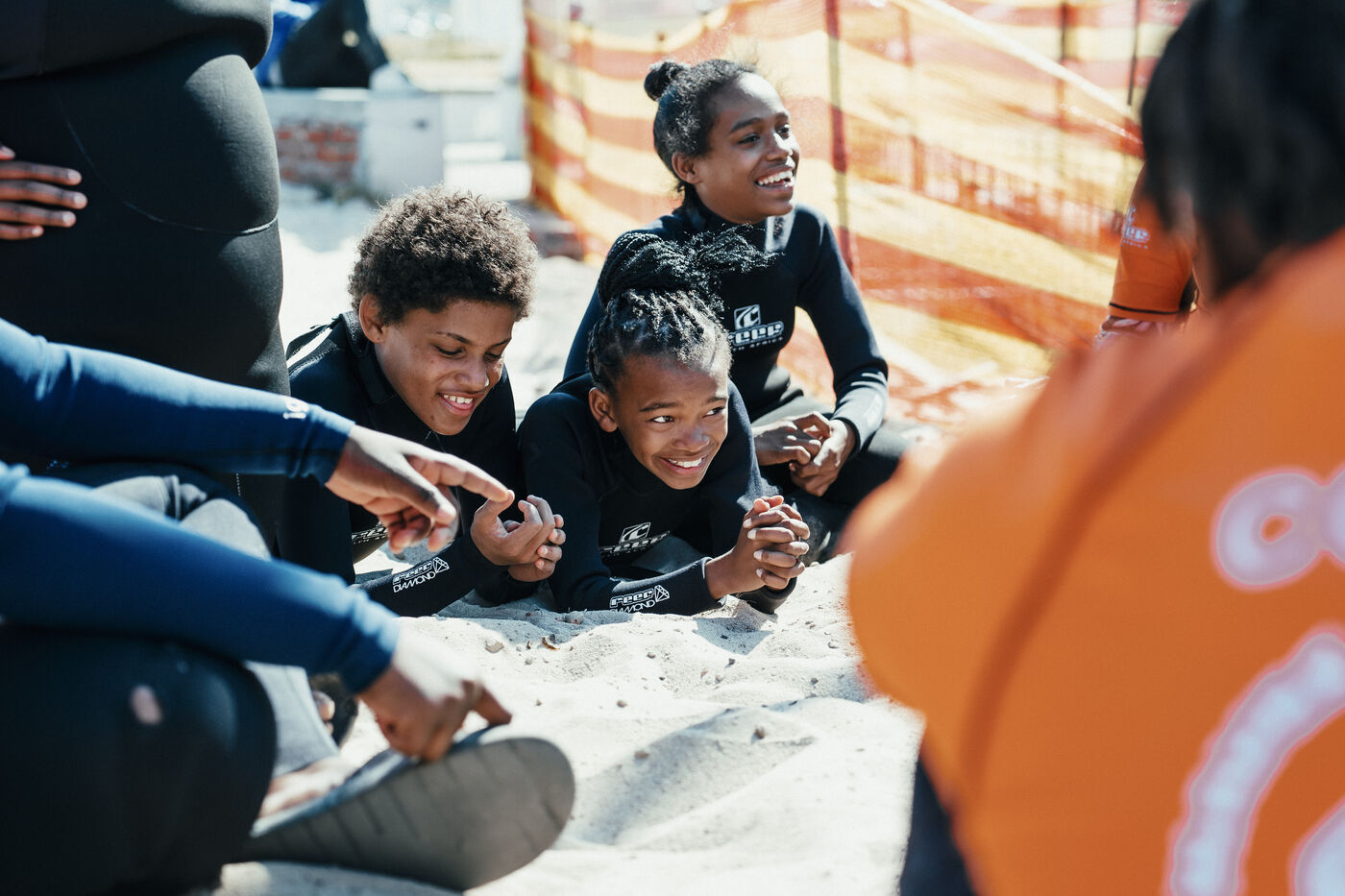 In Cape Town, on Muizenberg Beach, once forbidden to non-white populations, the ocean has become a place of reconstruction. Children and teenagers from neighboring townships participate in “Surf Therapy” sessions.