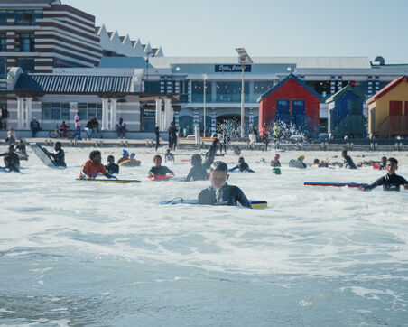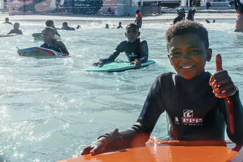 Au Cap, sur la plage de Muizenberg autrefois interdite aux populations non blanches, l’océan devient un espace de reconstruction. Des enfants et adolescents des townships voisins participent à des séances de "Surf Therapy".