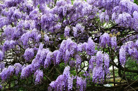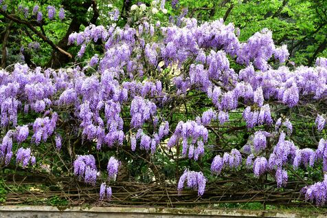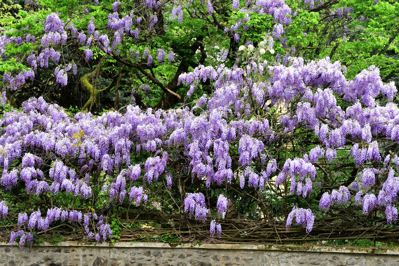 France, Vienne, 2025/04/14. Wisteria climbing plant in the city. Photograph by Romain Doucelin / Hans Lucas.