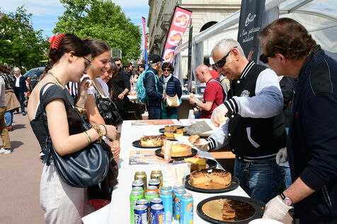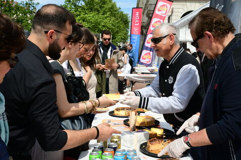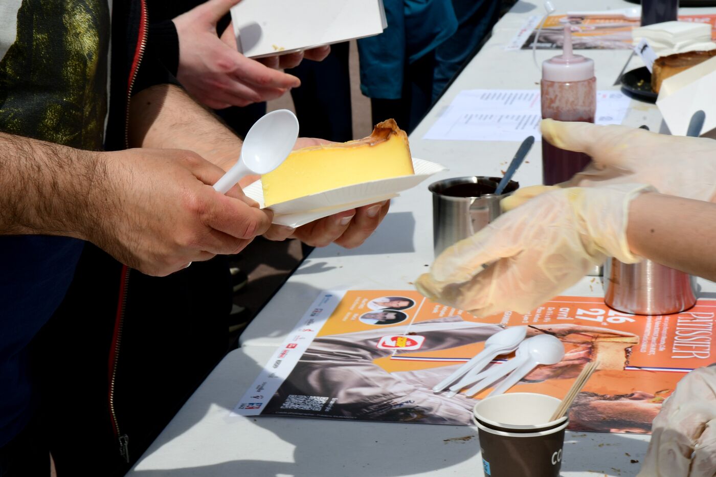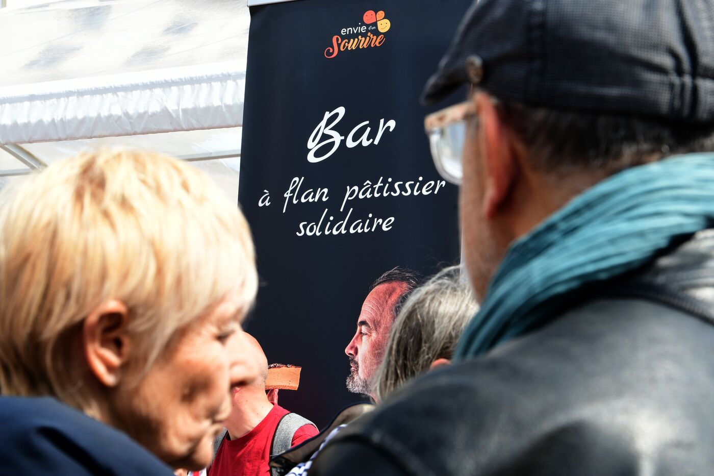 France, Lyon, 2025/04/26. Participant in the Best Flan Pâtisserie Competition in Lyon on Place Antonin Poncet by the association Envie d'un sourire (Envy for a Smile) by chef Fabrice Bonnot. Photograph by Romain Doucelin / Hans Lucas.