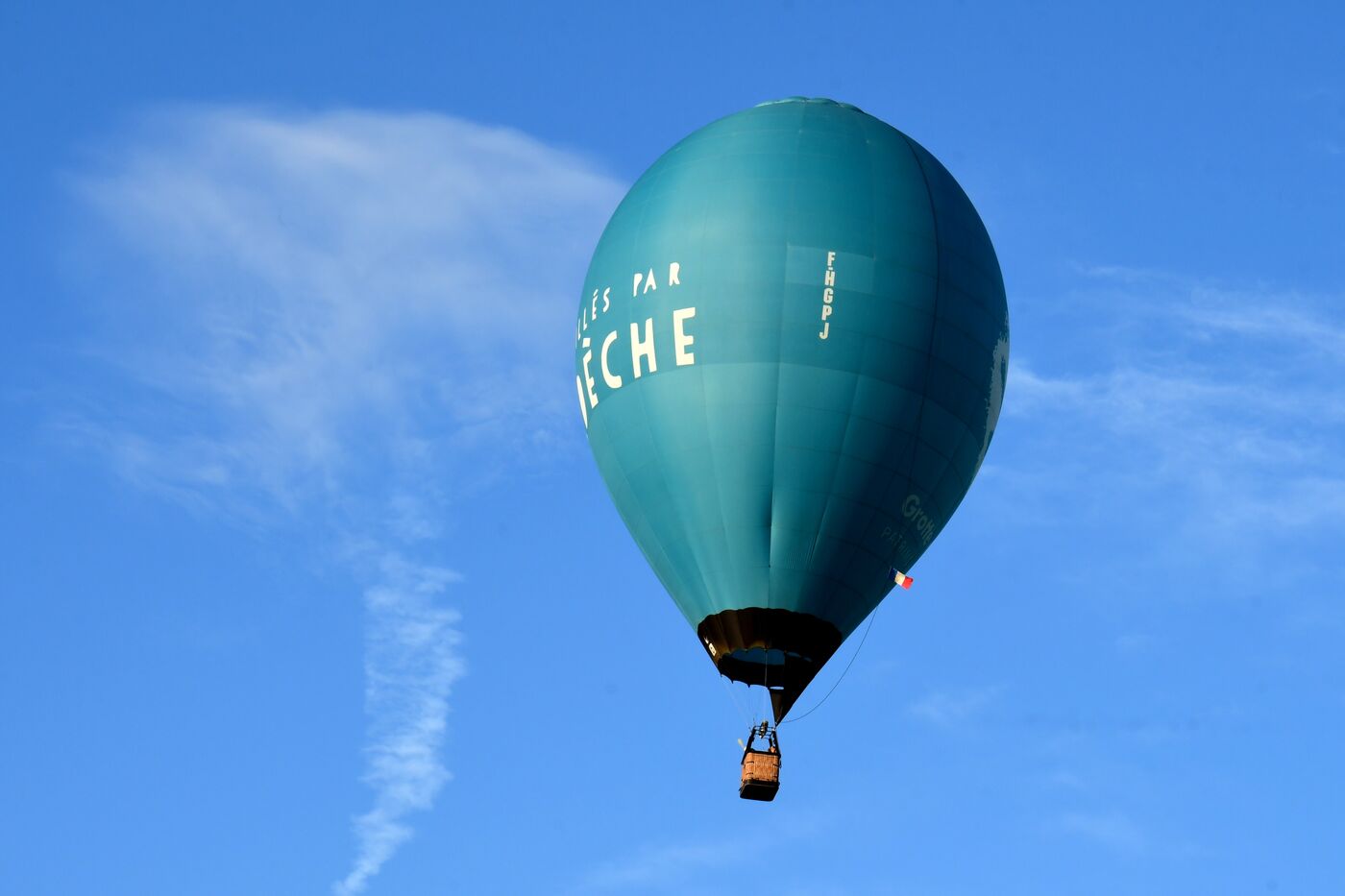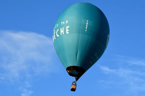 France, Annonay, 2025/07/05. Hot air balloon in flight during the Hot Air Balloon Festival in Annonay, Ardèche. I can t, I have a hot air balloon. Photograph by Romain Doucelin / Hans Lucas.
