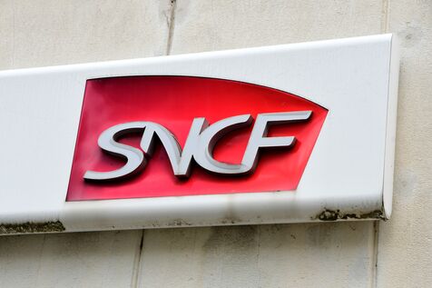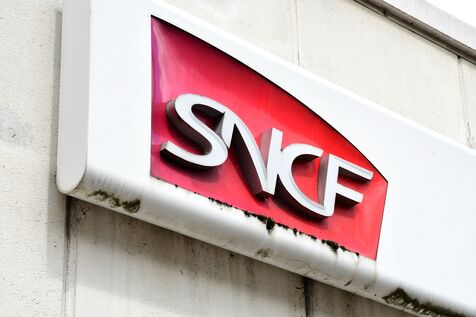 France, Annonay, 2025/07/08. SNCF logo in Ardèche. Photograph by Romain Doucelin / Hans Lucas.