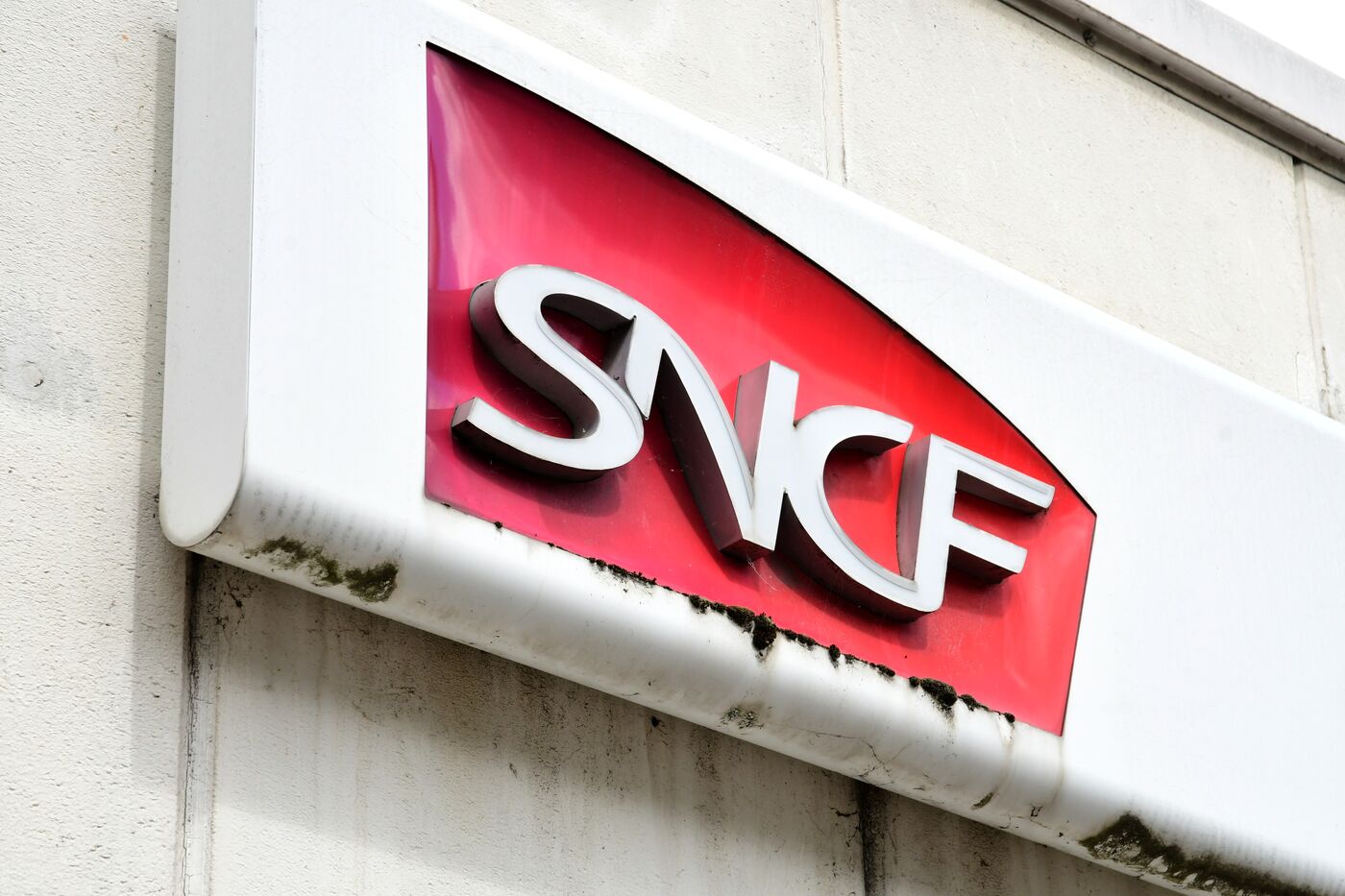 France, Annonay, 2025/07/08. Logo de la SNCF en Ardeche. Photographie de Romain Doucelin / Hans Lucas.