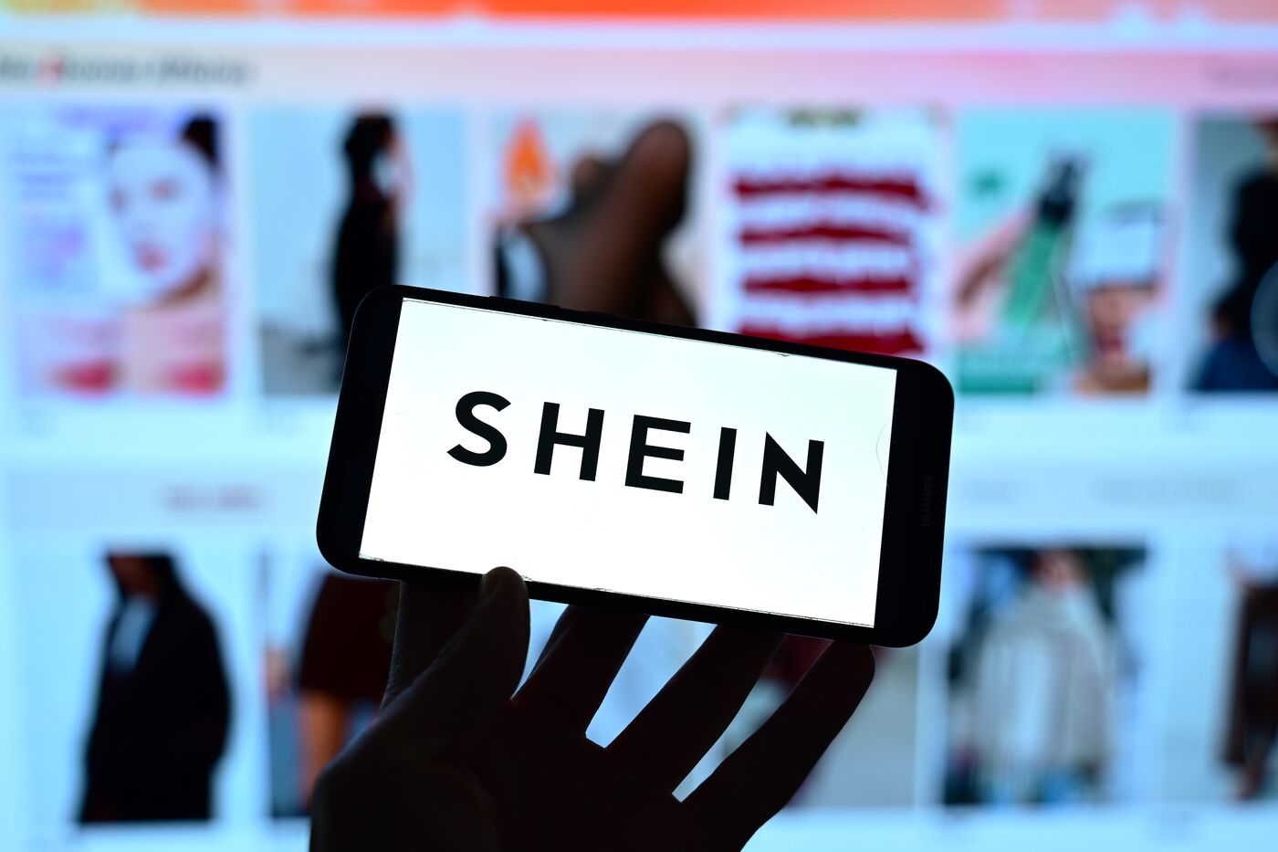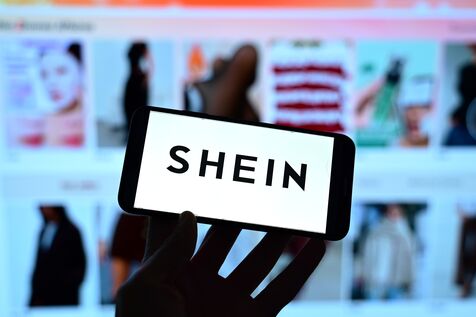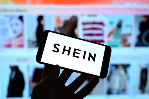 France, Clonas, November 5, 2025. Logo of the Chinese fashion retailer Shein and the company's store in the background. Photomontage. Photograph by Romain Doucelin / Hans Lucas.