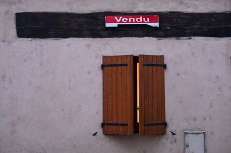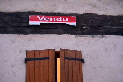 France, Villefranche-sur-Saone, November 25, 2019. House for sale sign in the Rhone department, in the Beaujolais region. Photograph by Romain Doucelin / Hans Lucas.