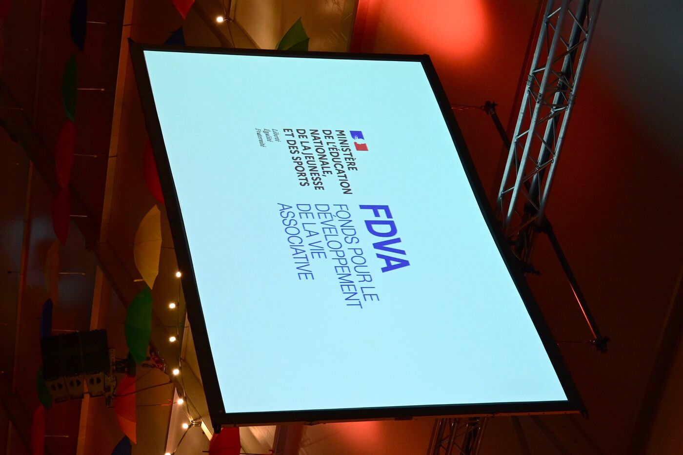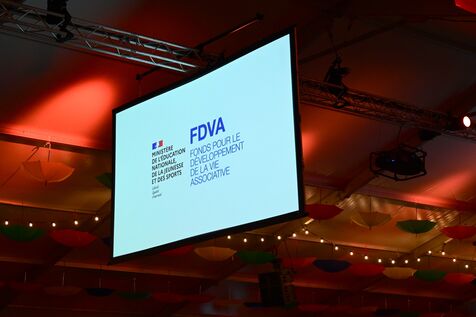 France, Beaujeu, 2025/11/19. Affiche fonds pour le developpement de la vie associative du ministere de l education nationale, jeunesse et sports lors de la fete des sarmentelles de Beaujeu. Photographie de Romain Doucelin / Hans Lucas.