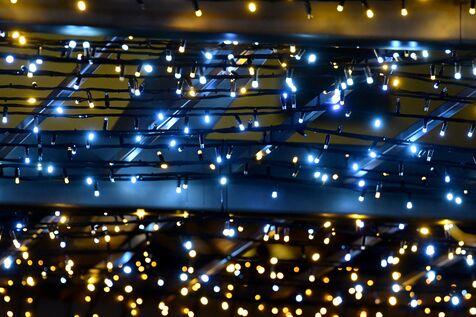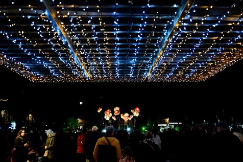 France, Roussillon toll plaza, 2025/12/08. String of lights during the Festival of Lights on December 8th in Place Paul Morand. Photograph by Romain Doucelin / Hans Lucas.