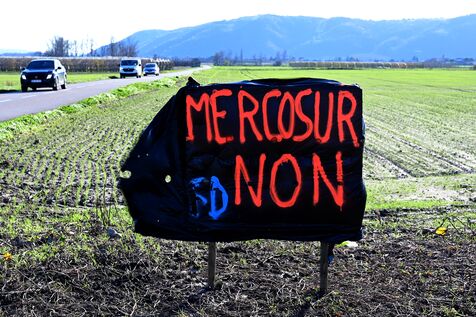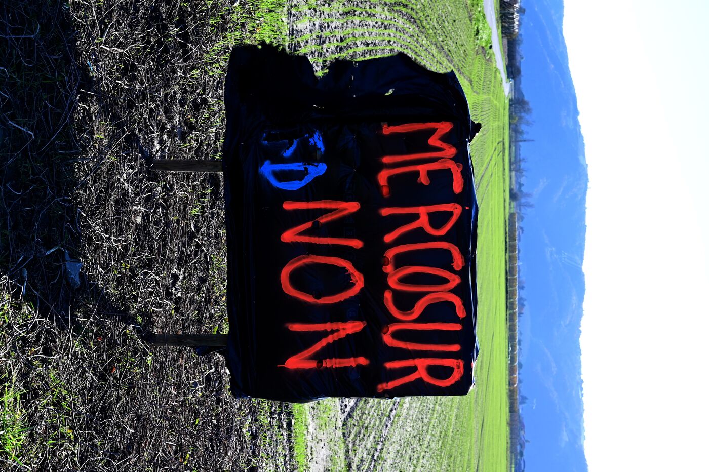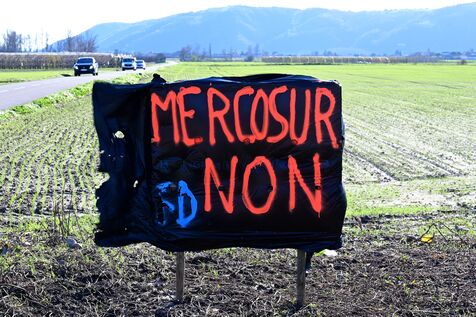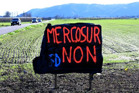 France, Salaise-sur-Sanne, December 9, 2025. Banner: No to Mercosur. Free trade zone of several countries. Photograph by Romain Doucelin / Hans Lucas.