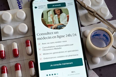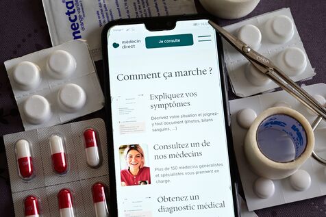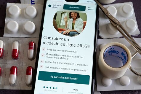 France, Clonas, December 8, 2025. Medecin Direct app on your phone. Teleconsultation with doctors. Photograph by Romain Doucelin / Hans Lucas.