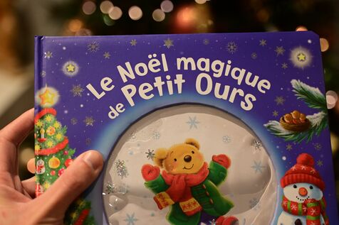 France, Clonas, December 8, 2025. A Christmas gift book for children, a story about a little bear. Photography by Romain Doucelin / Hans Lucas.