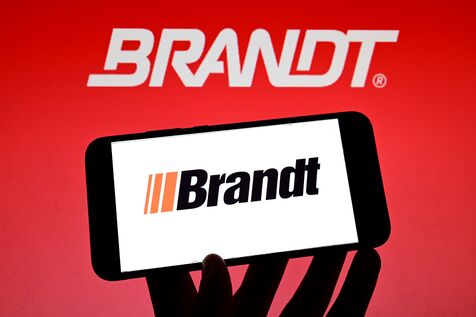 France, Veranne, December 12, 2025. Brandt company logo, French household appliance manufacturer. Company undergoes liquidation proceedings. Photomontage. Photograph by Romain Doucelin / Hans Lucas.