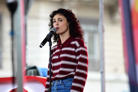 France, Lyon, December 20, 2025. Singer Barbara Pravi performs for the charity event We Burn for Them in Place de la République. Live concert broadcast on Scoop radio. Photograph by Romain Doucelin/Hans Lucas.