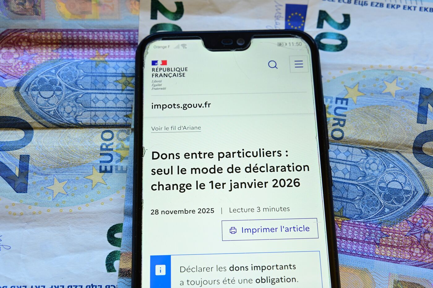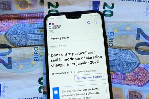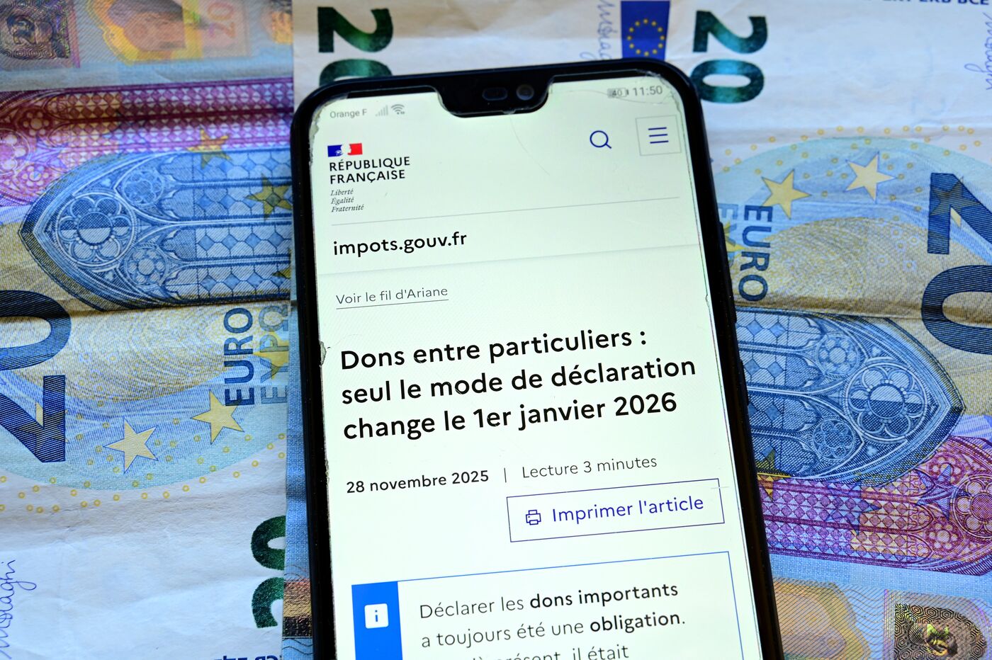 France, Veranne, 2026/01/01. Changement dans la declaration en ligne des dons entre particuliers pour les impots 2026. Photographie de Romain Doucelin / Hans Lucas.