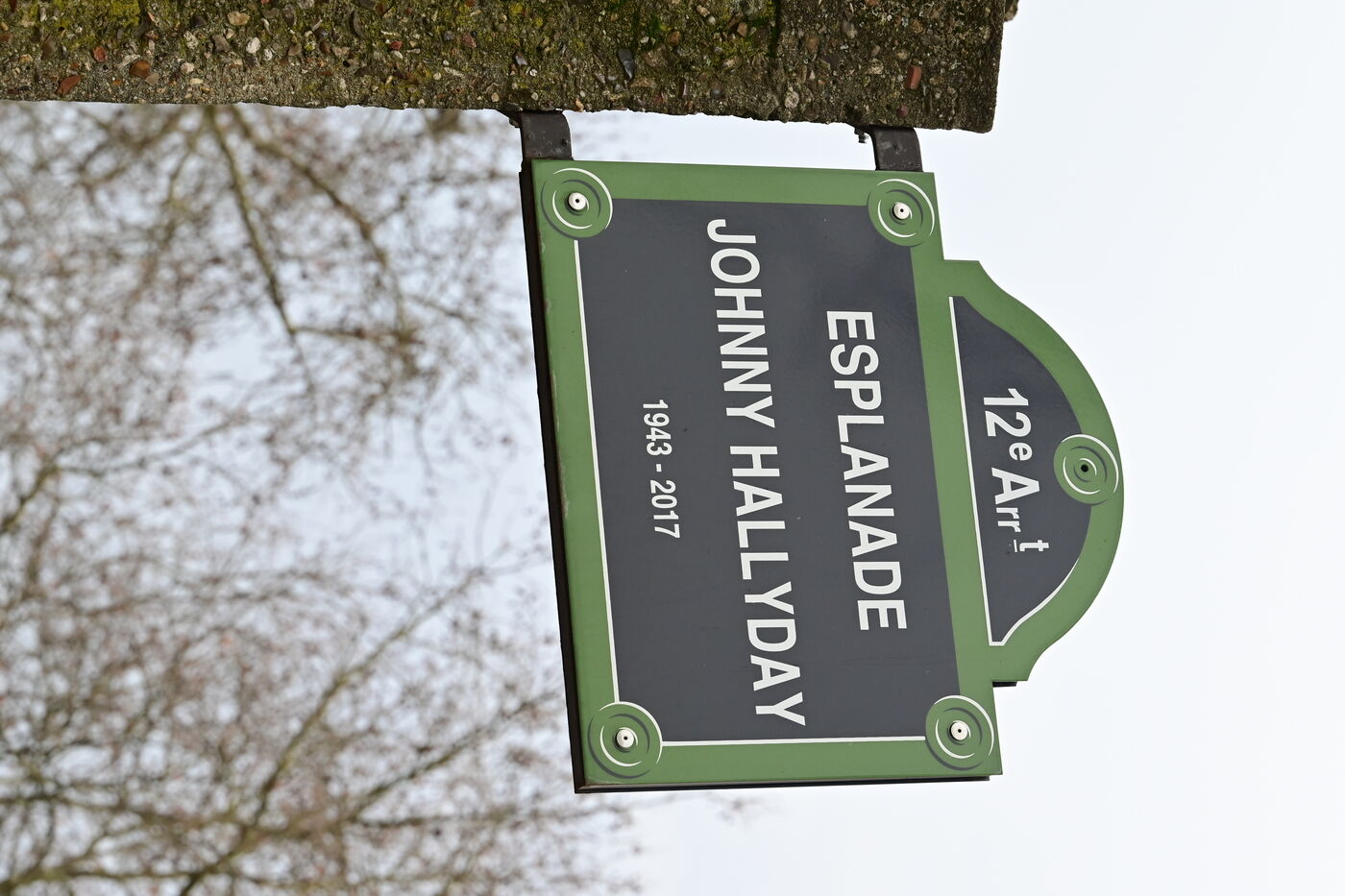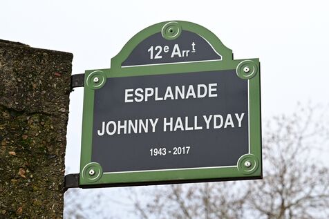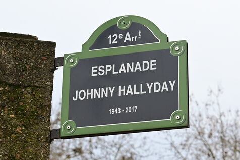 France, Paris, February 11, 2026. Johnny Hallyday Esplanade sign in the 12th arrondissement of Paris. Photograph by Romain Doucelin / Hans Lucas.